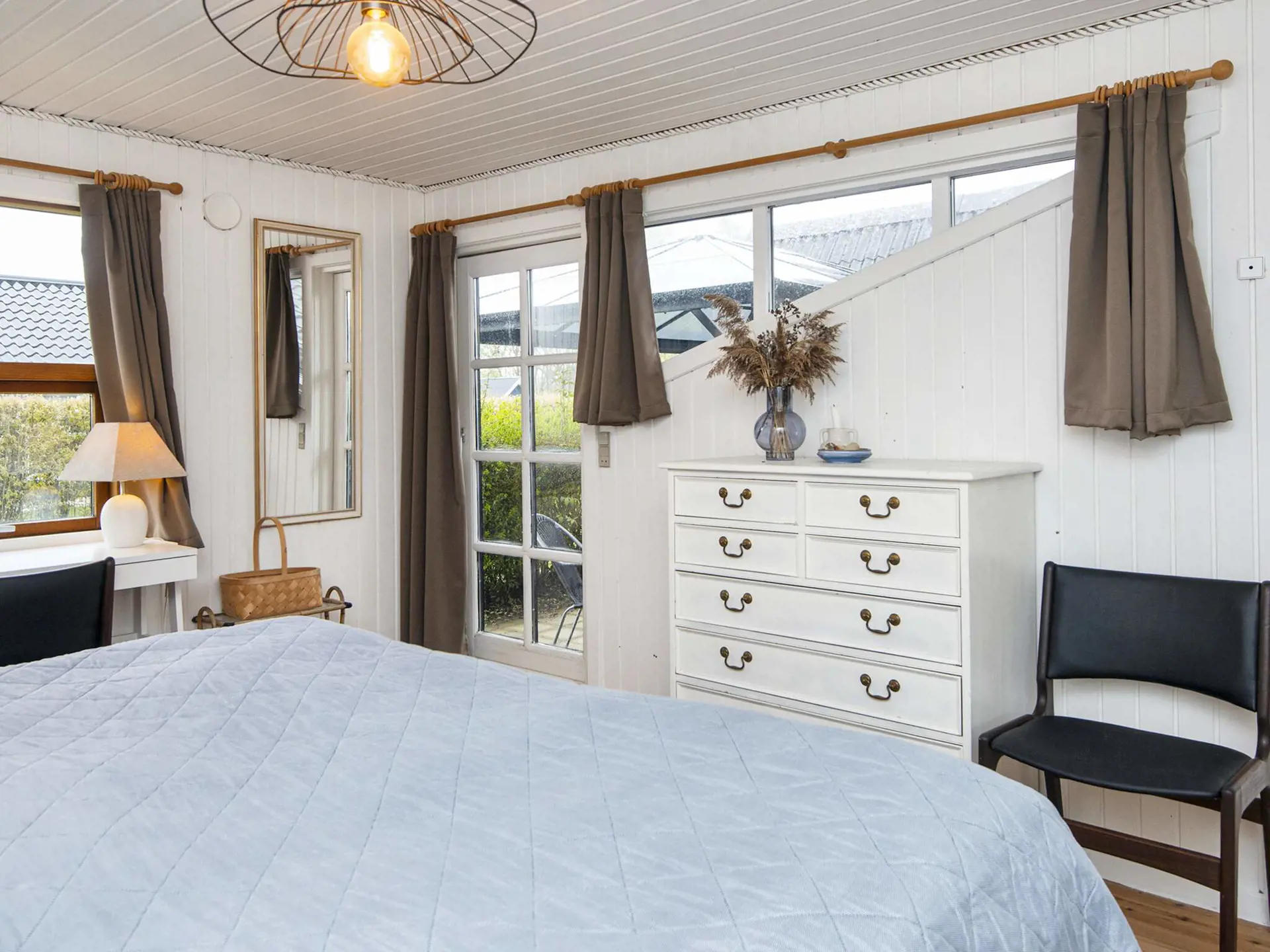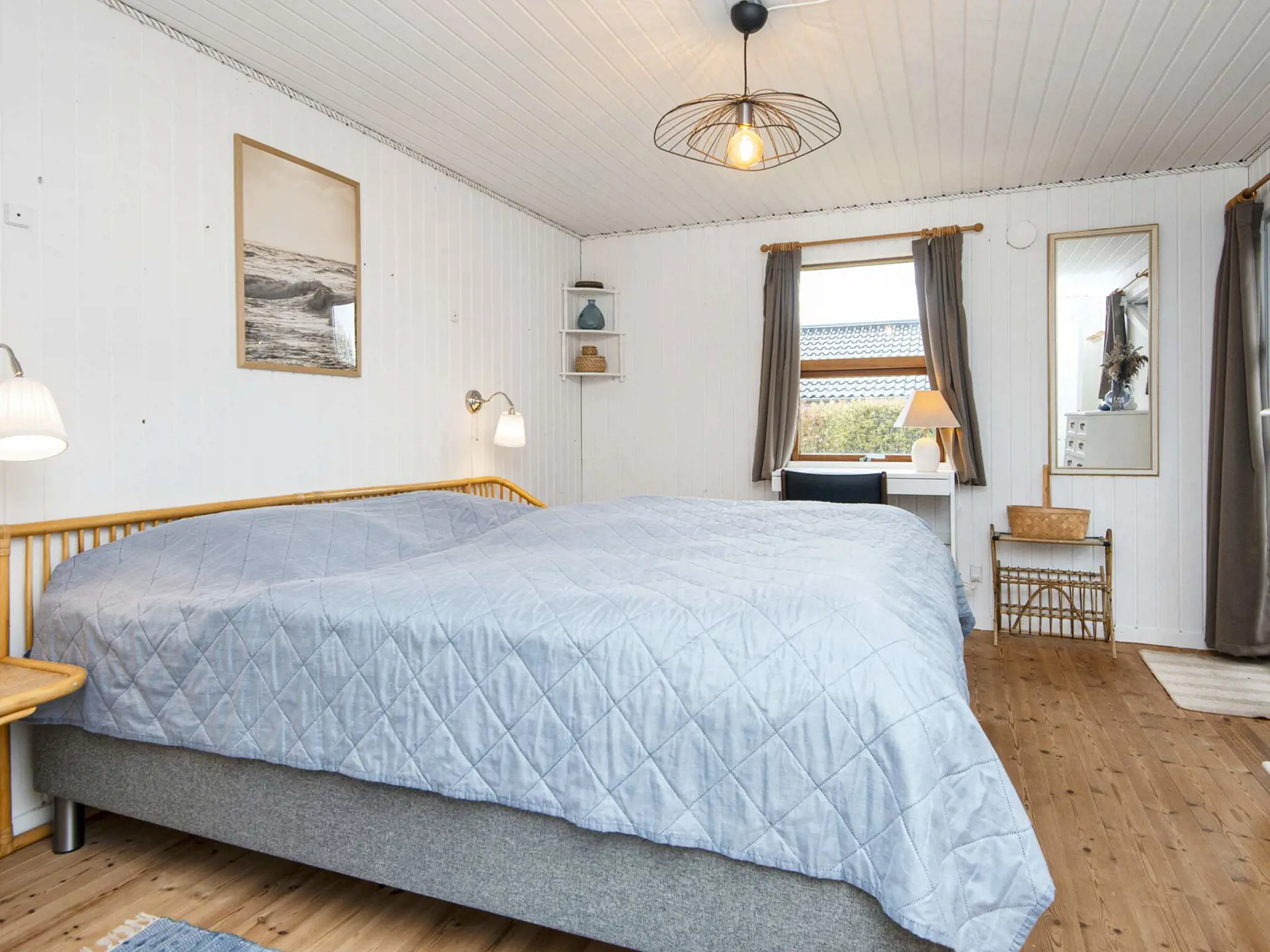 Im größeren Schlafzimmer gibt es ein Doppelbett und viel Stauraum. Im kleineren Zimmer steht ein kurzes Bett, das perfekt für die Kinder ist.