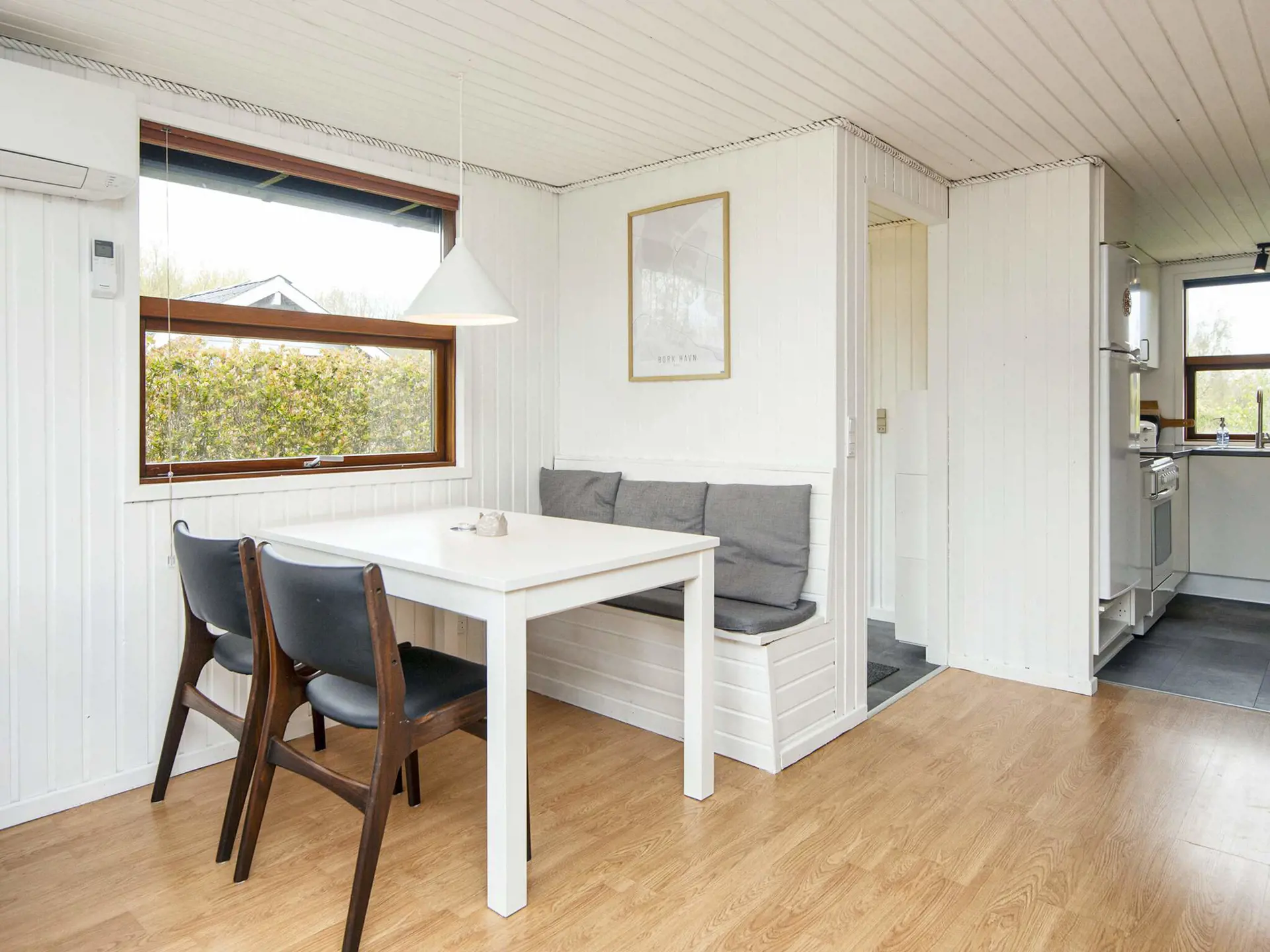 Ferienhaus in Bork Havn, nur ca. 300 m vom Ringkøbing-Fjord entfernt. Das Haus ist praktisch eingerichtet, wobei jeder Quadratmeter optimal ausgenutzt wird. Der offene Küchen- und Wohnbereich des Ferienhauses wird im Urlaub zum natürlichen Treffpunkt für das Familienleben.