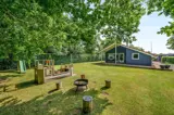 Im Ferienhaus erwartet euch ein heller, offener Wohnbereich mit einem bequemen Sofa und Fernseher, der das Zentrum des Ferienhauses bildet. Große Fenster lassen viel Licht herein und bieten einen herrlichen Blick ins Grüne. Ein offener Hängeboden mit Fernseher bietet eine wunderbare Rückzugsmöglichkeit und wird insbesondere euren Kindern gefallen.