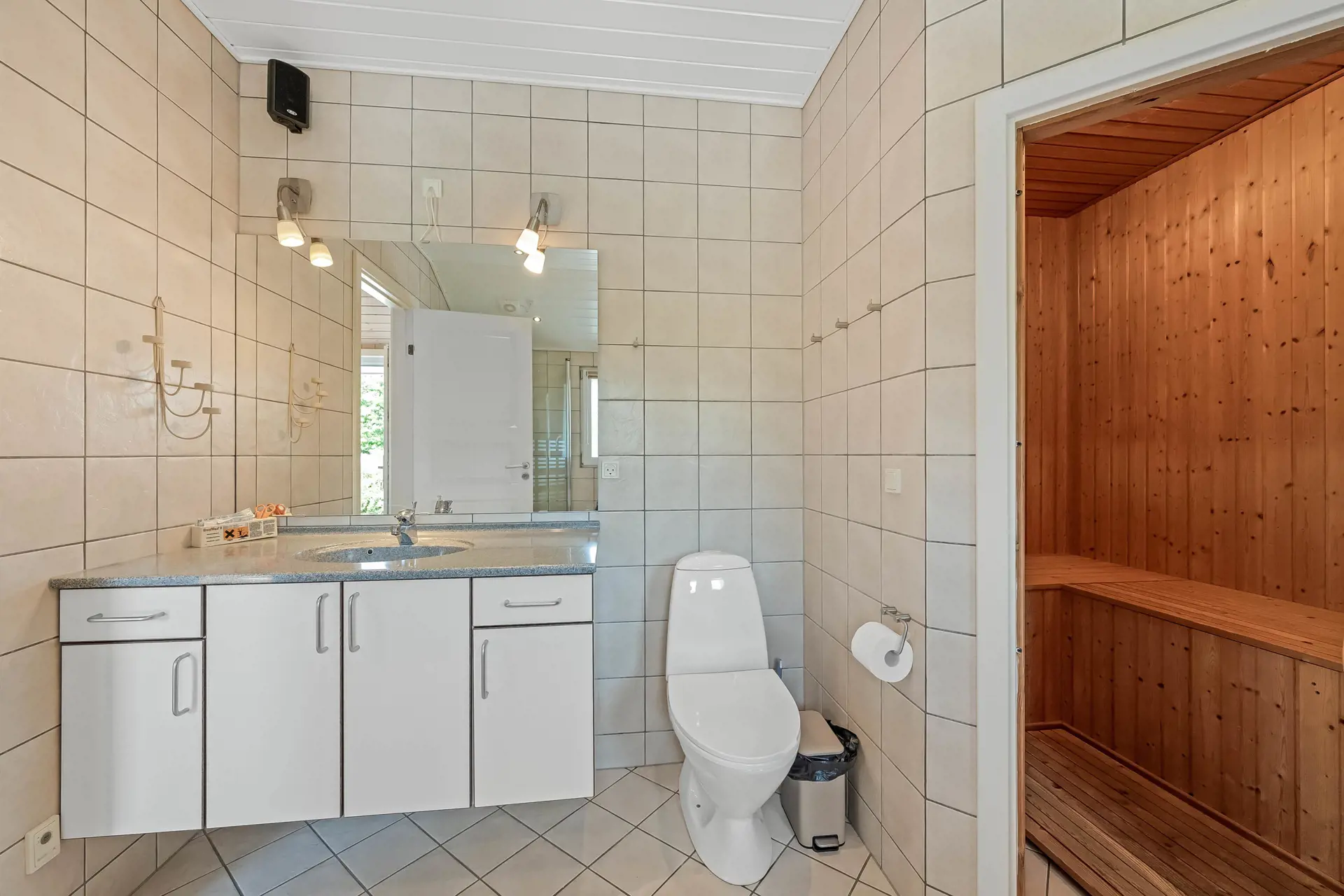 In der zum Wohnbereich hin offenen Küche findet ihr unter anderem eine Spülmaschine, eine Mikrowelle sowie eine Kühl-Gefrierkombination mit 60 l Gefriermöglichkeit. 2 Tageslichtbäder, jeweils mit Dusche, warten auf euch, eines davon mit einer Sauna und einem entspannenden Whirlpool ausgestattet. Hier könnt ihr die Seele baumeln lassen.