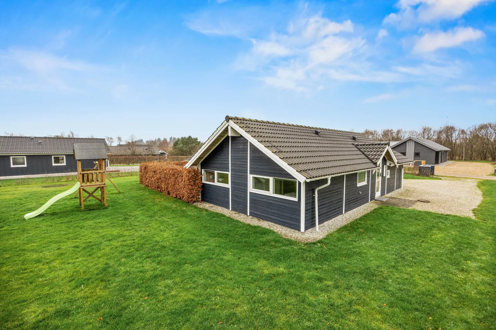 Das 1200 m² große Gartengrundstück, auf dem euer Ferienhaus liegt, ist ein echtes Paradies für Familien. Während die Erwachsenen die Sonnenliegen oder die teils überdachte Terrasse mit bequemen Gartenmöbeln genießen, können die Kinder auf der Schaukel, der Rutsche oder dem Spielturm spielen. Zwei Fußballtore und verschiedene Spiele bieten weitere Möglichkeiten für Spaß und Bewegung.