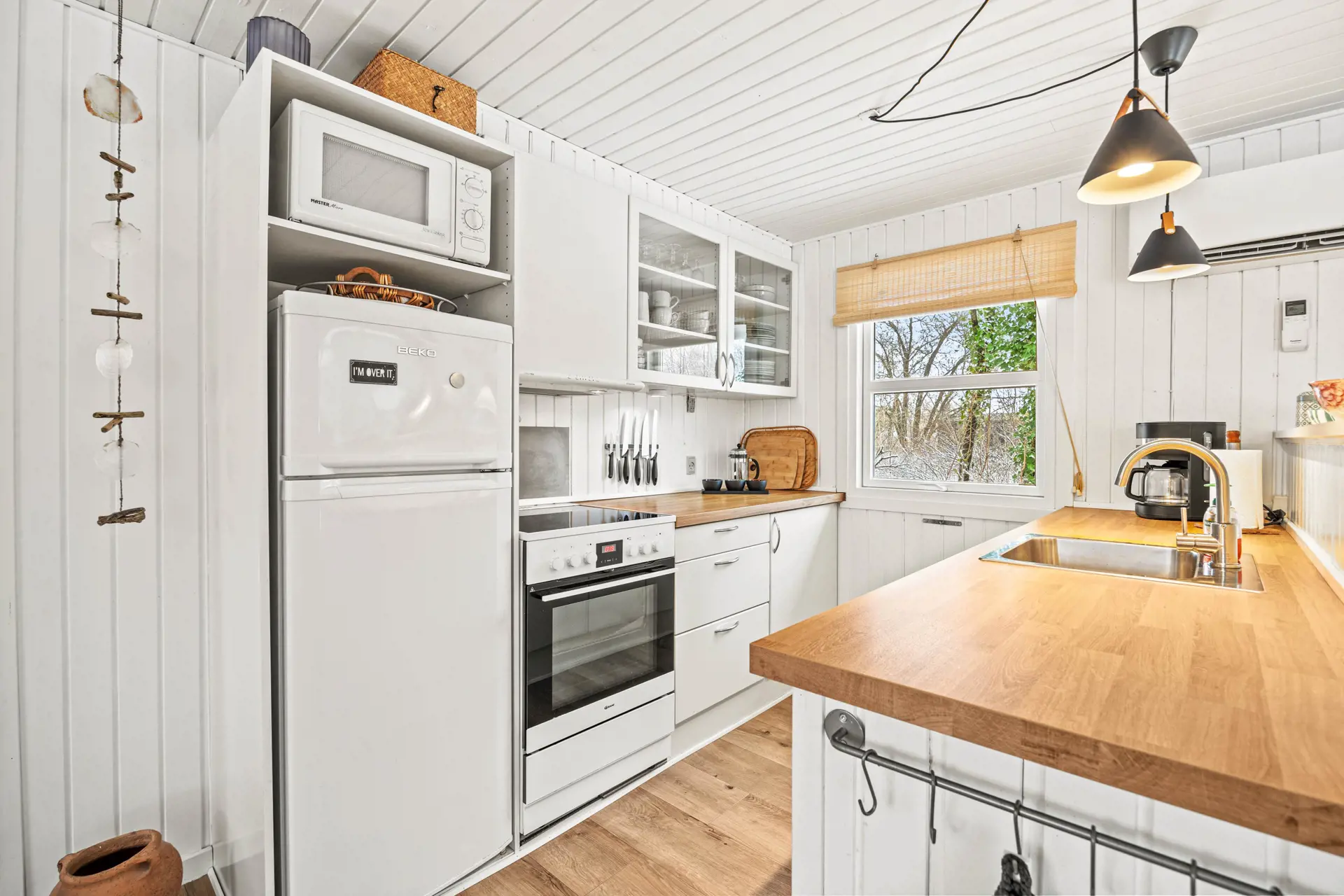 Der Innenbereich des Ferienhauses bietet sowohl Komfort als auch Funktionalität und sorgt dafür, dass euer Aufenthalt entspannt wird. Im Wohnbereich könnt ihr euch um den gemütlichen Kaminofen versammeln, der eine warme und einladende Atmosphäre schafft – perfekt zum Abschalten nach einem Tag am Fjord. Die offene Küche ist mit allem Notwendigen ausgestattet, einschließlich einer praktischen Spülmaschine, die es euch leicht macht, den Abwasch im Griff zu behalten.