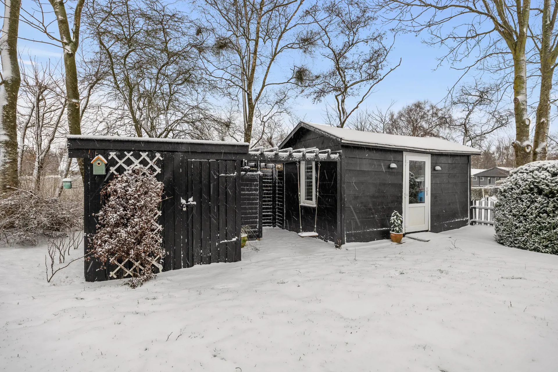 Die Jüngsten können sich im Sandkasten austoben oder eine Runde schaukeln, während die Erwachsenen eine Tasse Kaffee auf der Terrasse genießen. Der Außenbereich ist darauf ausgelegt, den perfekten Rahmen für einen tollen Familienurlaub zu schaffen. Für eine Übernachtung im Freien steht ein Shelter auf dem Grundstück zur Verfügung - ein Abenteuer für Groß und Klein.