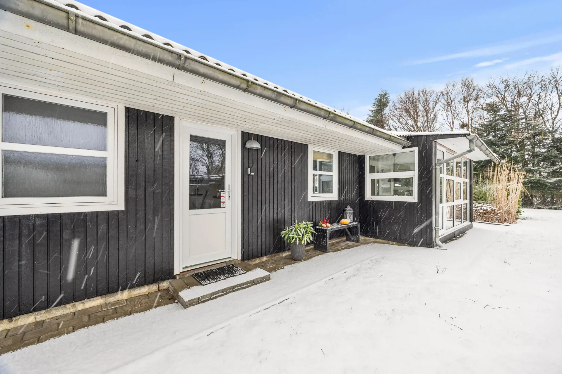 Der Außenbereich des Ferienhauses erstreckt sich über ein großzügiges Rasengrundstück von 1.037 m², das sowohl zum Spielen als auch zum Entspannen einlädt. Die teilweise überdachte Terrasse ermöglicht es euch, das Leben im Freien bei jedem Wetter zu genießen – hier könnt ihr grillen, essen oder einfach die Ruhe auf euch wirken lassen.