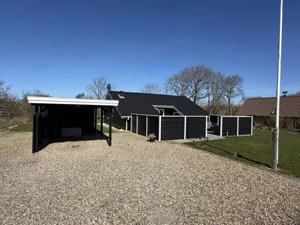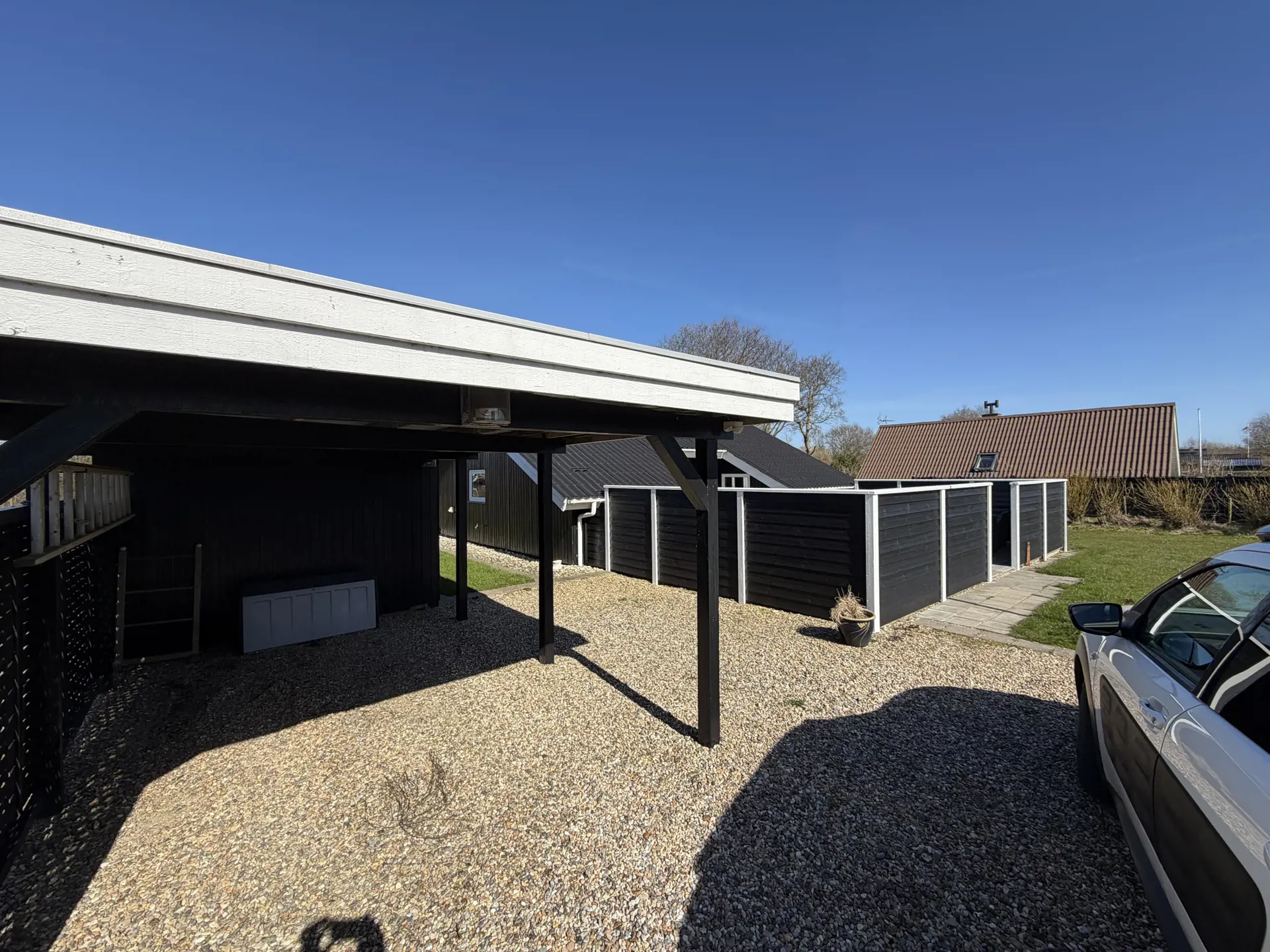 Besonders angenehm: Die Terrasse ist geschlossen und teils abgeschirmt, sodass ihr je nach Wetter und Bedürfnis windgeschützt sitzen könnt. Auch an den Alltag ist gedacht, denn ein Carport gibt euch eine geschützte Abstellmöglichkeit direkt am Ferienhaus.