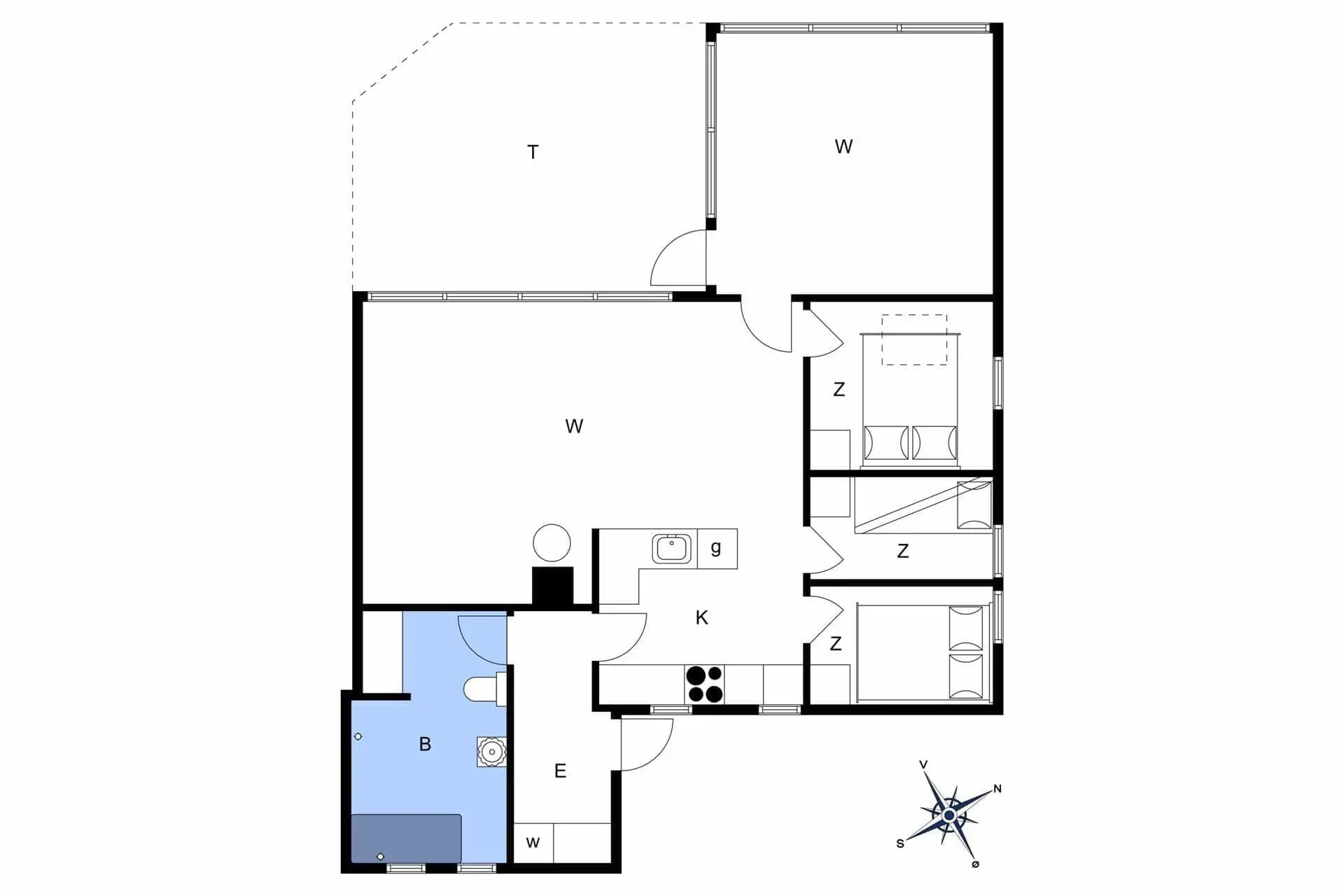 Ein Whirlpool, ein Kaminofen und ein Wintergarten - dies sind nur einige der schönen Details, die in diesem Haus die Urlaubstage versüßen. Der Kaminofen befindet sich im Aufenthaltsbereich, der sich aus dem attraktiven Wohnzimmer und dem Küchen- und Essbereich zusammensetzt. Der Wintergarten bildet eine Verlängerung des Wohnraumes und ermöglicht es daher, Kaffee oder Mahlzeiten in diesem schönen Hausteil zu verzehren, während man das Wetter und den Ausblick auf den grünen Garten genießen kann. Zur Wohnfläche zählen darüber hinaus ein Eingangsbereich mit einer Waschmaschine, ein schönes Bad in dem sich der Whirlpool befindet und drei Schlafzimmer mit insgesamt sechs Schlafplätzen.
