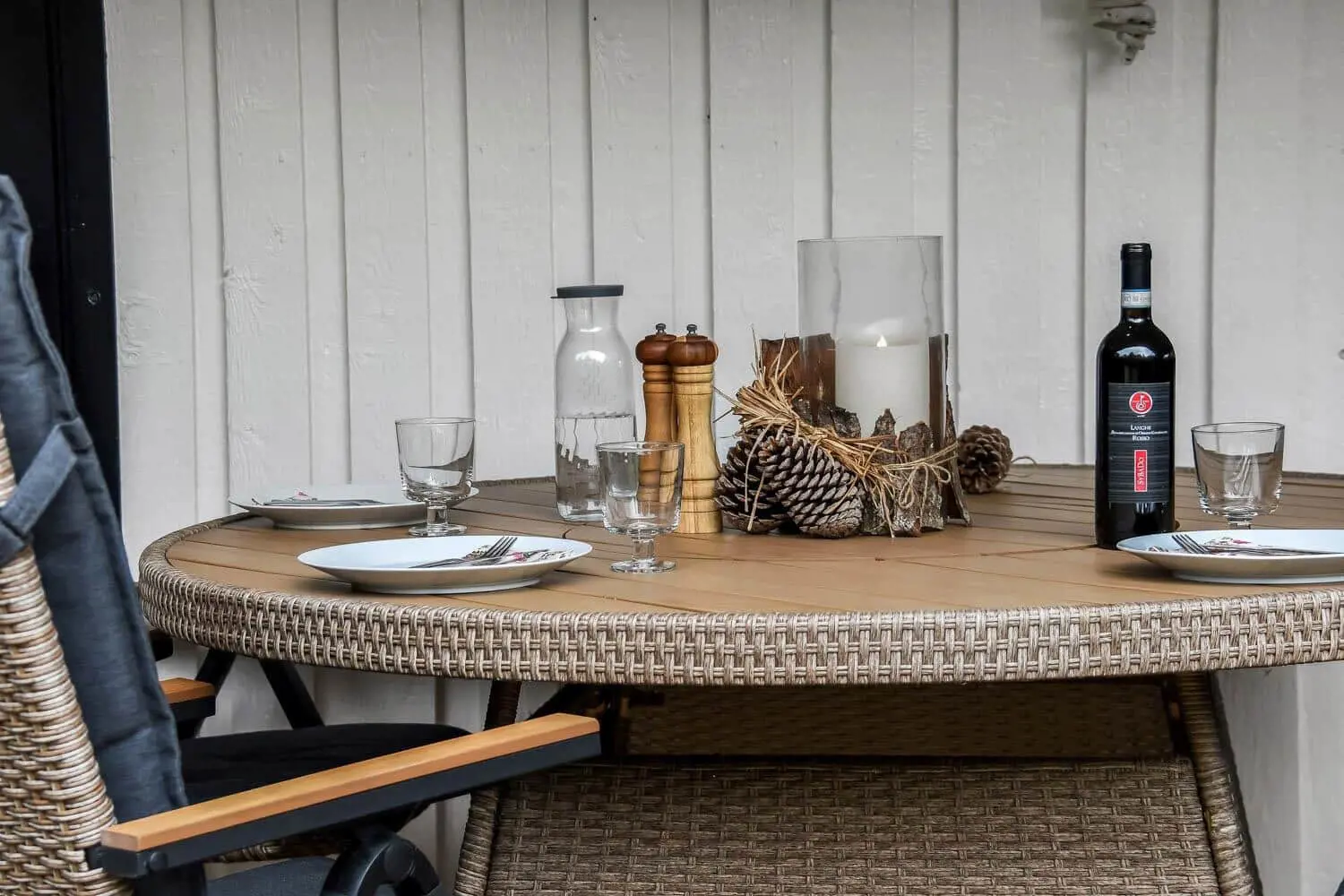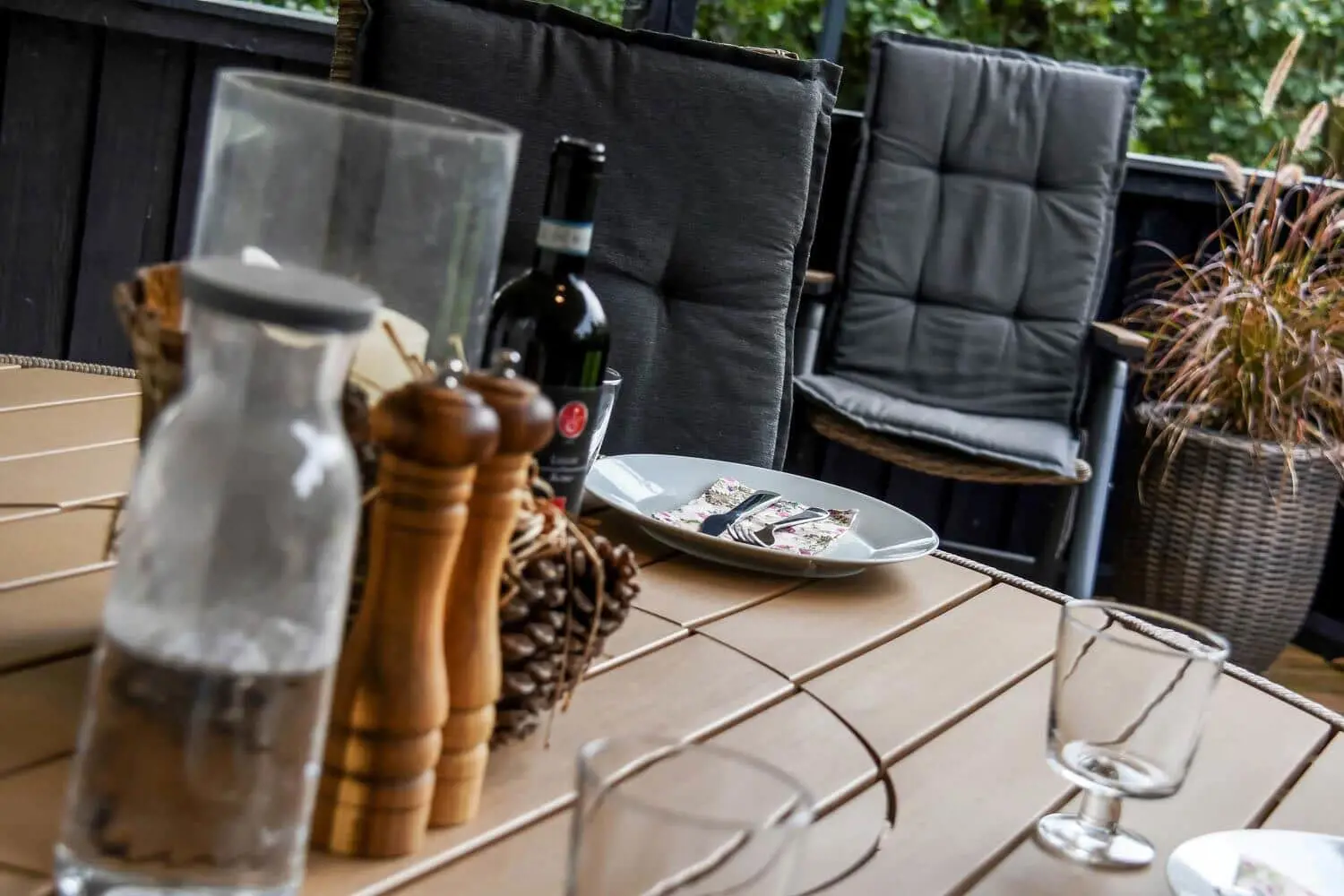 Wenn Sie Ihre Urlaubszeit lieber unter freiem Himmel verbringen, dann sollten Sie den hauseigenen Garten nutzen, in dem Sie sich wunderbar aufhalten können. Die große, nach Süden ausgerichtete Terrasse ist teilweise überdacht, sodass Sie frei wählen können, ob Sie Ihr Mittagessen oder Ihre entspannte Lesestunde in der Sonne oder lieber im angenehm kühlen Schatten genießen. Das Haus ist zudem von einer großen, ebenen Grasfläche umgeben, die sicherlich nicht nur Ihre Kinder zum Umhertollen, zu verschiedensten Gartenspielen und zu Ballspielen animieren wird.