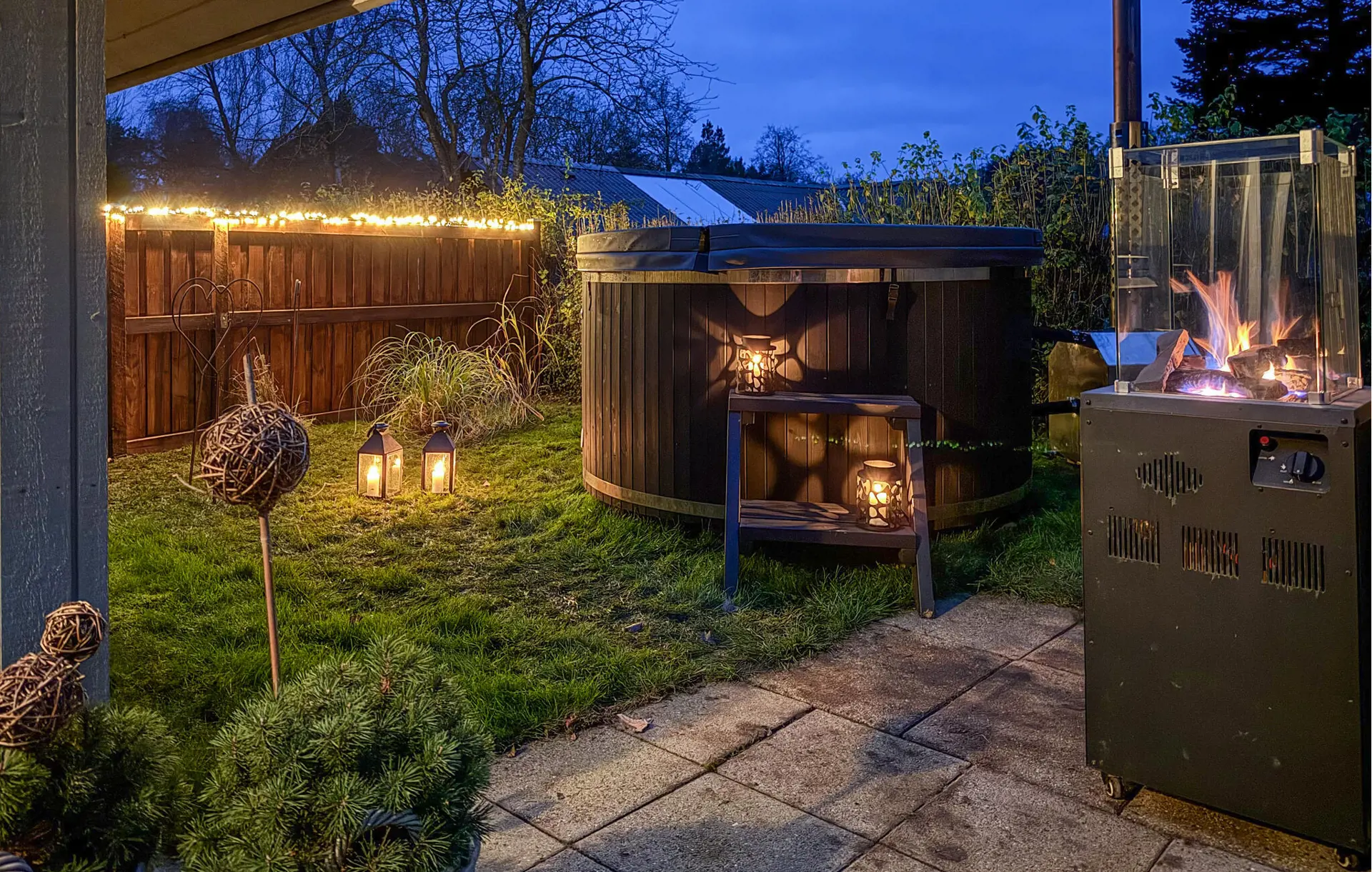 Das Abendessen können Sie auch auf der teilweise überdachten Terrasse am warmen Gaskamin genießen. Ihre Kinder werden sich über den großen Garten mit Schaukel, Sandkasten und Außenanlagen freuen. Sie können einen ruhigen Abend im Finnischen Holzbad unter freiem Himmel ausklingen lassen.