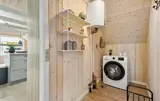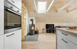 In diesem Haus genießen Sie entspannte Tage in stilvollem Rahmen. Lassen Sie sich vom offenen Wohnbereich mit seiner hellen Holzverkleidung und den sichtbaren Balken willkommen heißen. Entspannen Sie auf dem großen Ecksofa, lesen Sie ein Buch oder genießen Sie gemeinsam einen Filmabend. Der Kaminofen sorgt auch an kühleren Tagen für eine angenehme Atmosphäre. Bereiten Sie Ihre Mahlzeiten in der offenen Küche mit Kochinsel und Barhockern zu und nehmen Sie Ihre Mahlzeiten wahlweise am Esstisch oder im Sitzbereich auf der Terrasse ein.