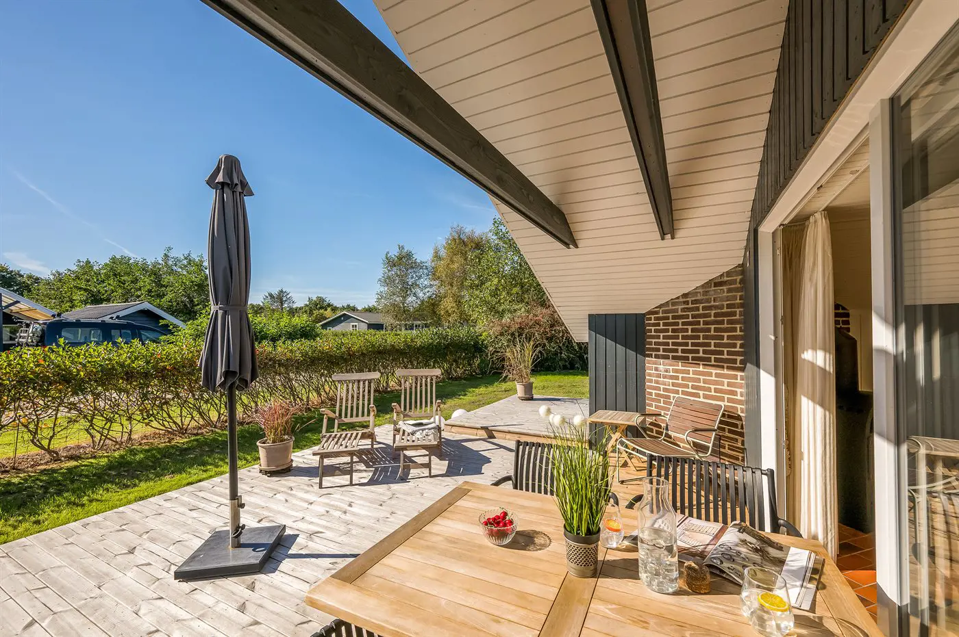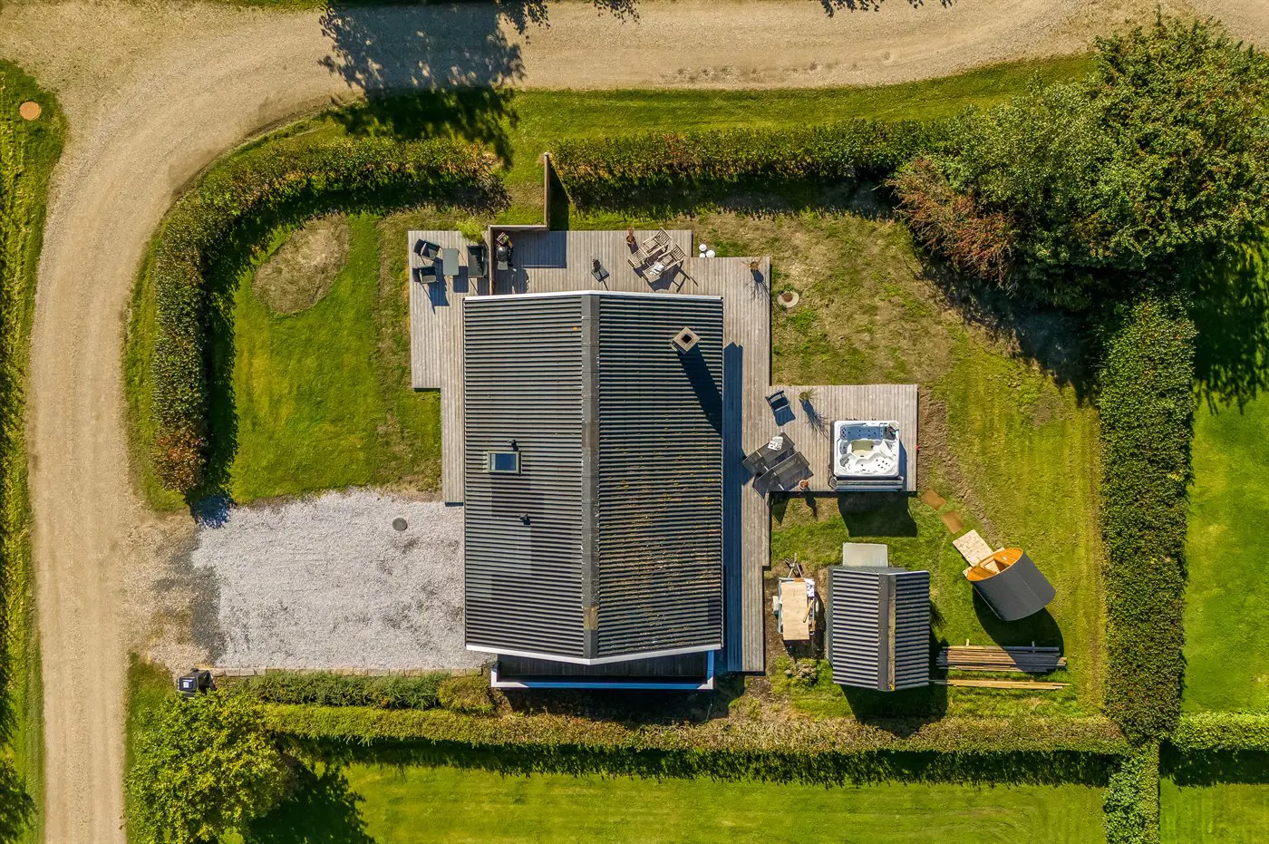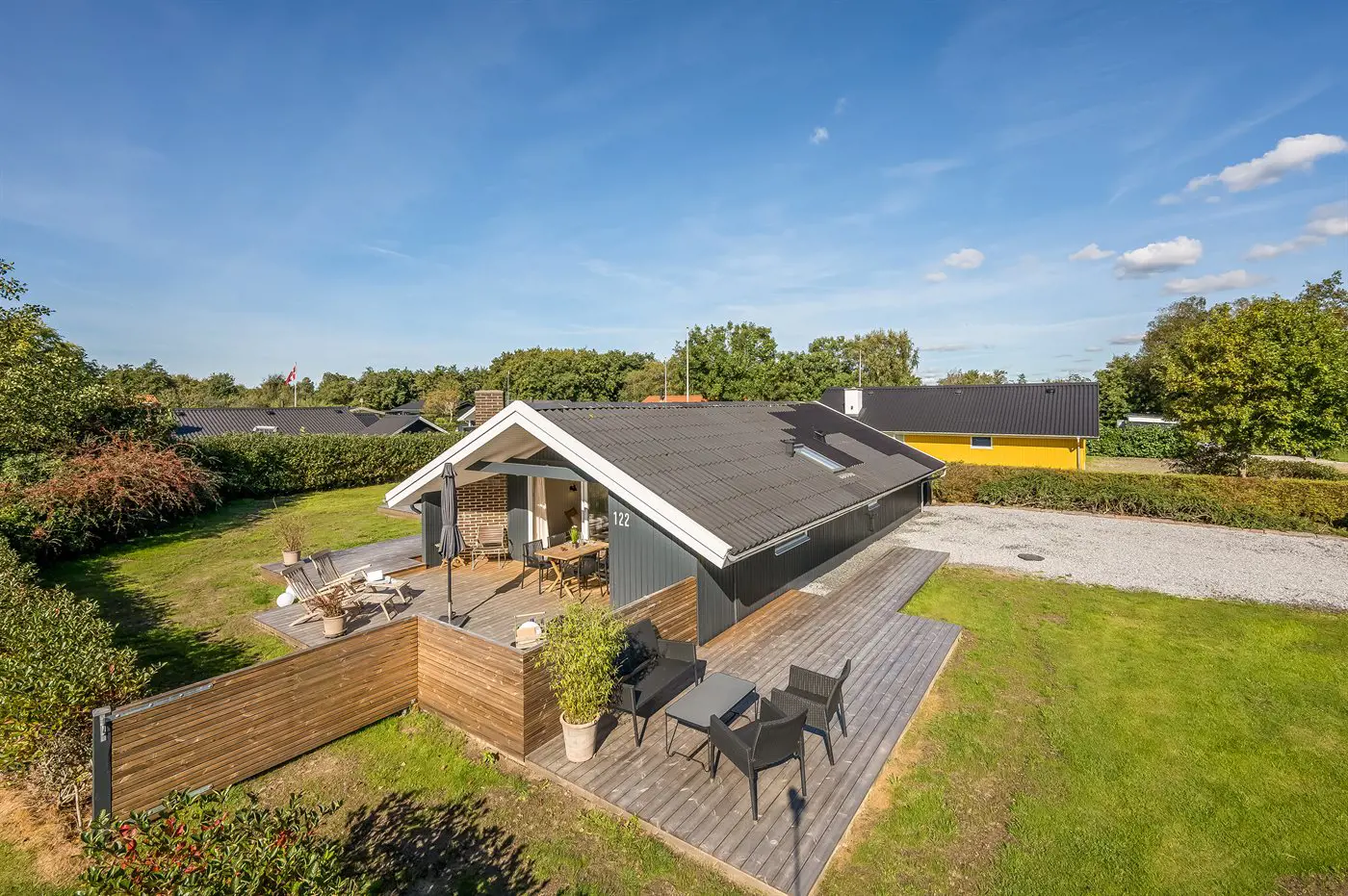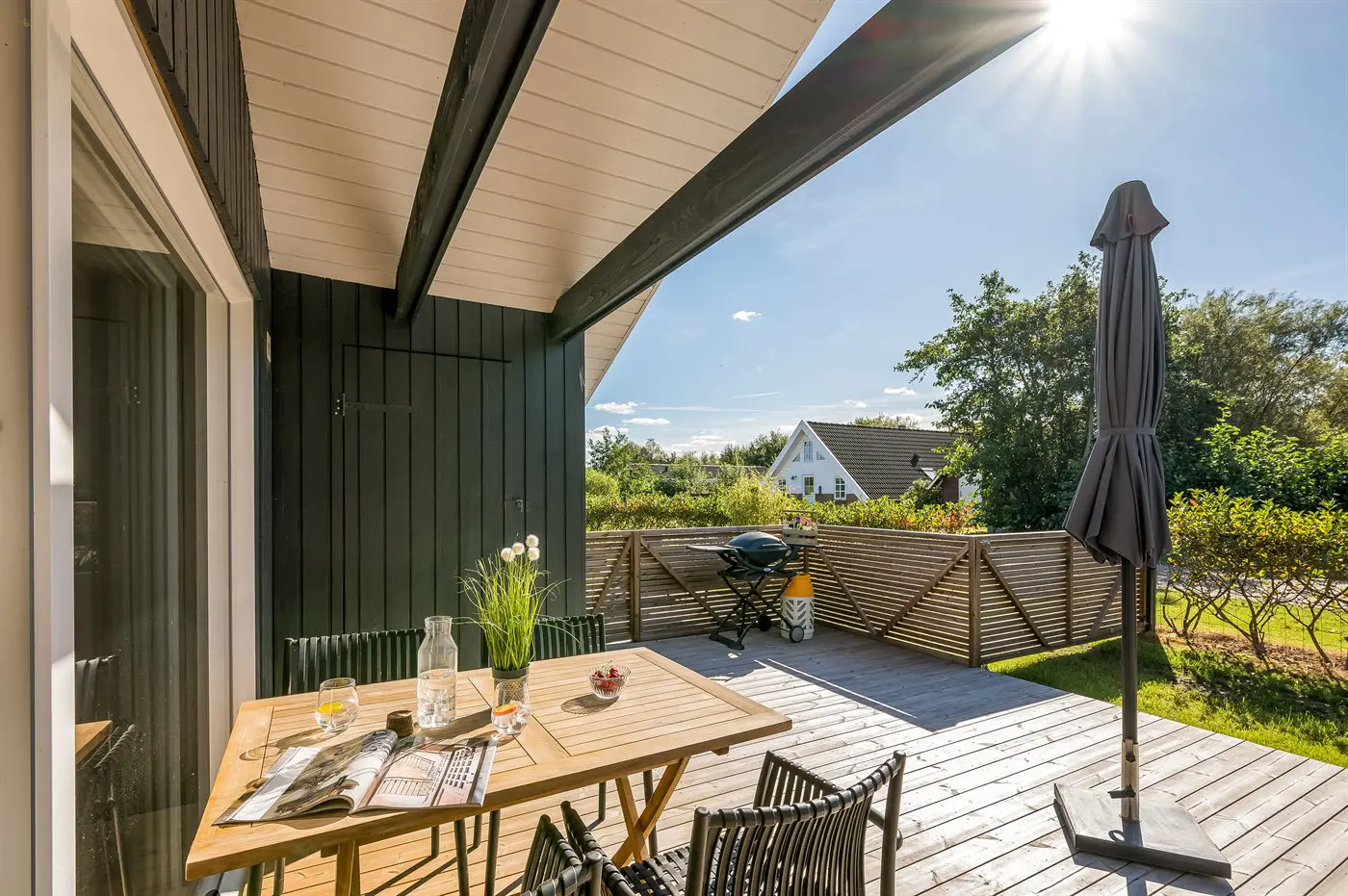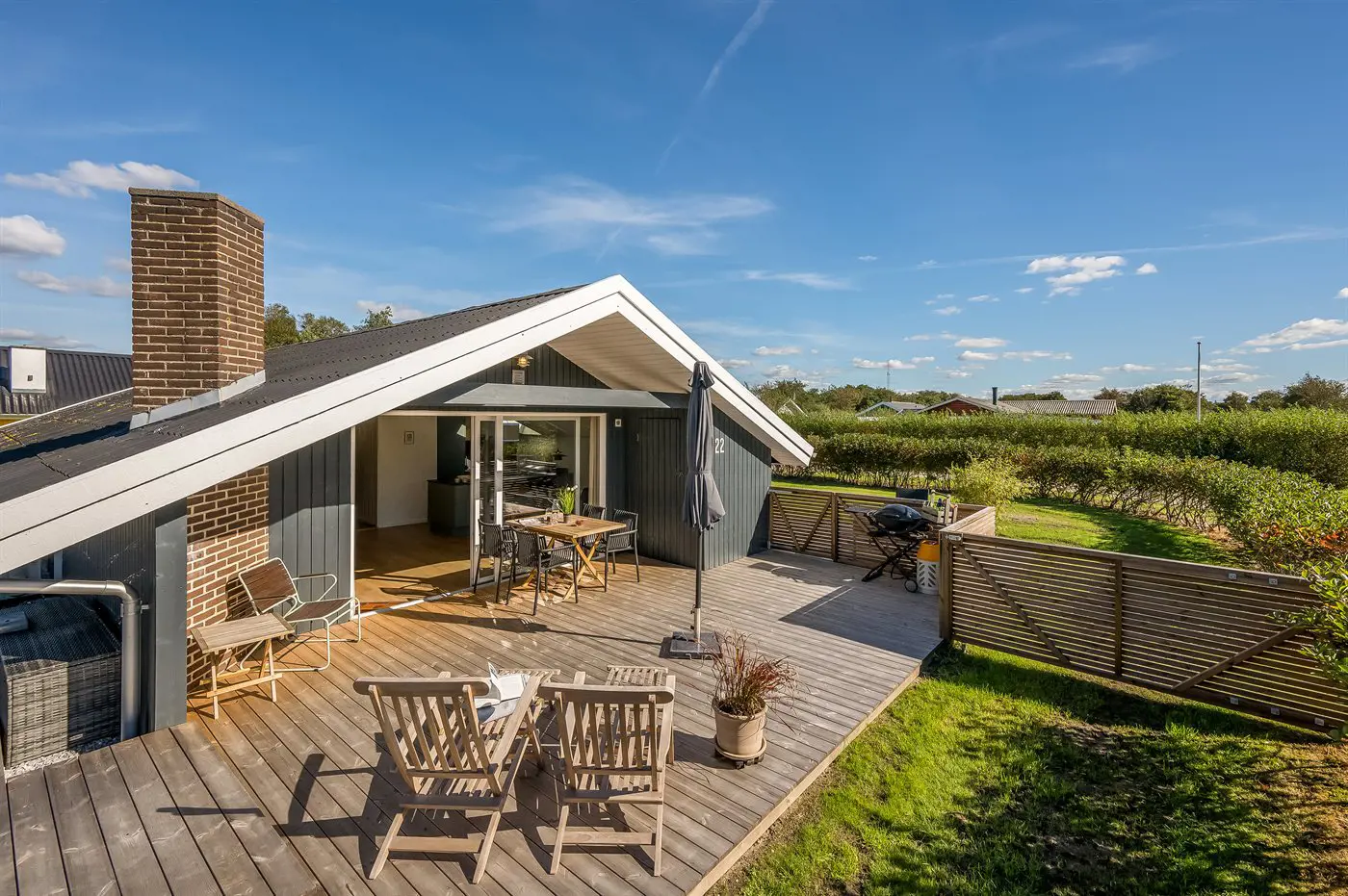 Hier steht alles im Zeichen von Entspannung, gemütliches Beisammensein und Spaß. Das Grundstück ist eingezäunt – perfekt, wenn ihr Haustiere mitbringen möchtet.
