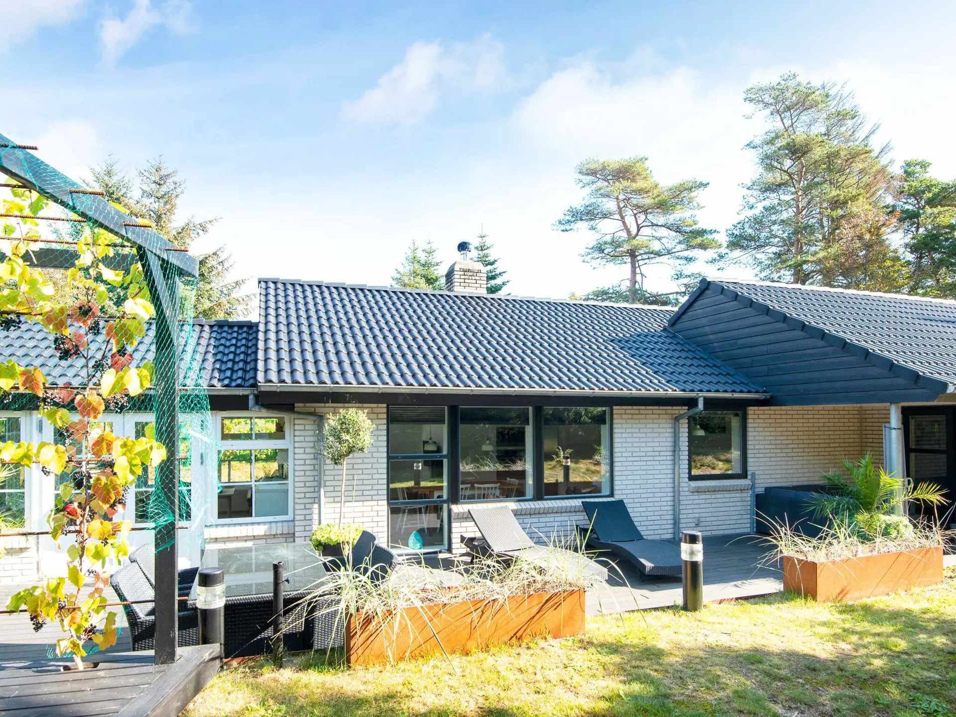 Ansprechendes Ferienhaus mit Whirlpool, auf einer kleinen Lichtung mitten im Wald und dennoch nur etwa 4 Minuten Fußweg von Hemmet Strand entfernt gelegen.