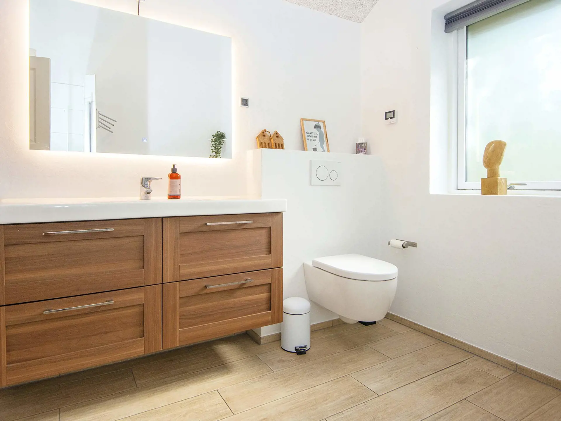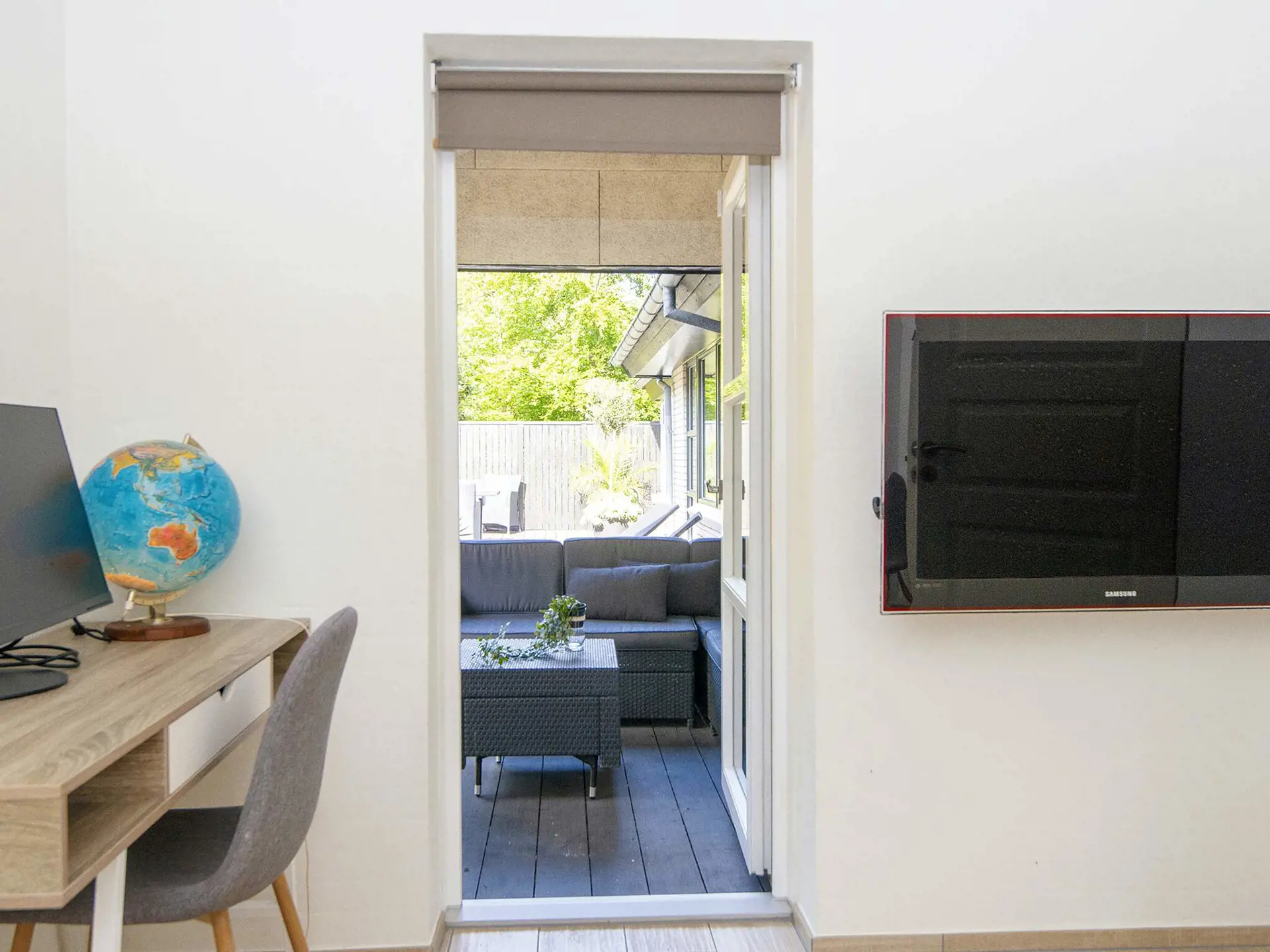 Im Inneren des Hauses erwartet Sie ein Masterbedroom mit eigenem TV sowie zwei weitere Schlafzimmer. Die Küchenausstattung ist zeitgemäß und umfassend, die tägliche Hausarbeit somit ein Leichtes. Die verglaste Veranda verlängert die Sommertage und bietet Schutz an kühleren Tagen. Durch die großen Fenster des Küchen-/Wohnbereiches hat man Ausblick in die umliegende Natur. Die Ruhe des Waldes und der schöne Whirlpool des Hauses tragen zur Erholung vom Alltagsstress bei. Die zahlreichen Bäume auf dem Naturgrundstück vermitteln einen besonders naturnahen Eindruck. Mit etwas Glück beobachtet man Hasen oder Eichhörnchen auf dem Grundstück. Die umliegenden Bäume bieten zudem auch Wind-, Sonnen- und Sichtschutz auf der Terrasse.