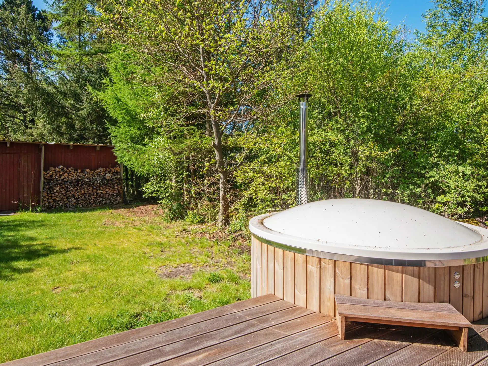Im schön geschützten Außenbereich finden Sie nicht nur den Außen-Whirlpool. Wildnisbad und die Saunatonne für erholsame Stunden, sondern auch die praktische Außendusche sowie eine Außenküche mit integriertem Kugelgrill. Im Schuppen gibt es einen Gefrierschrank.