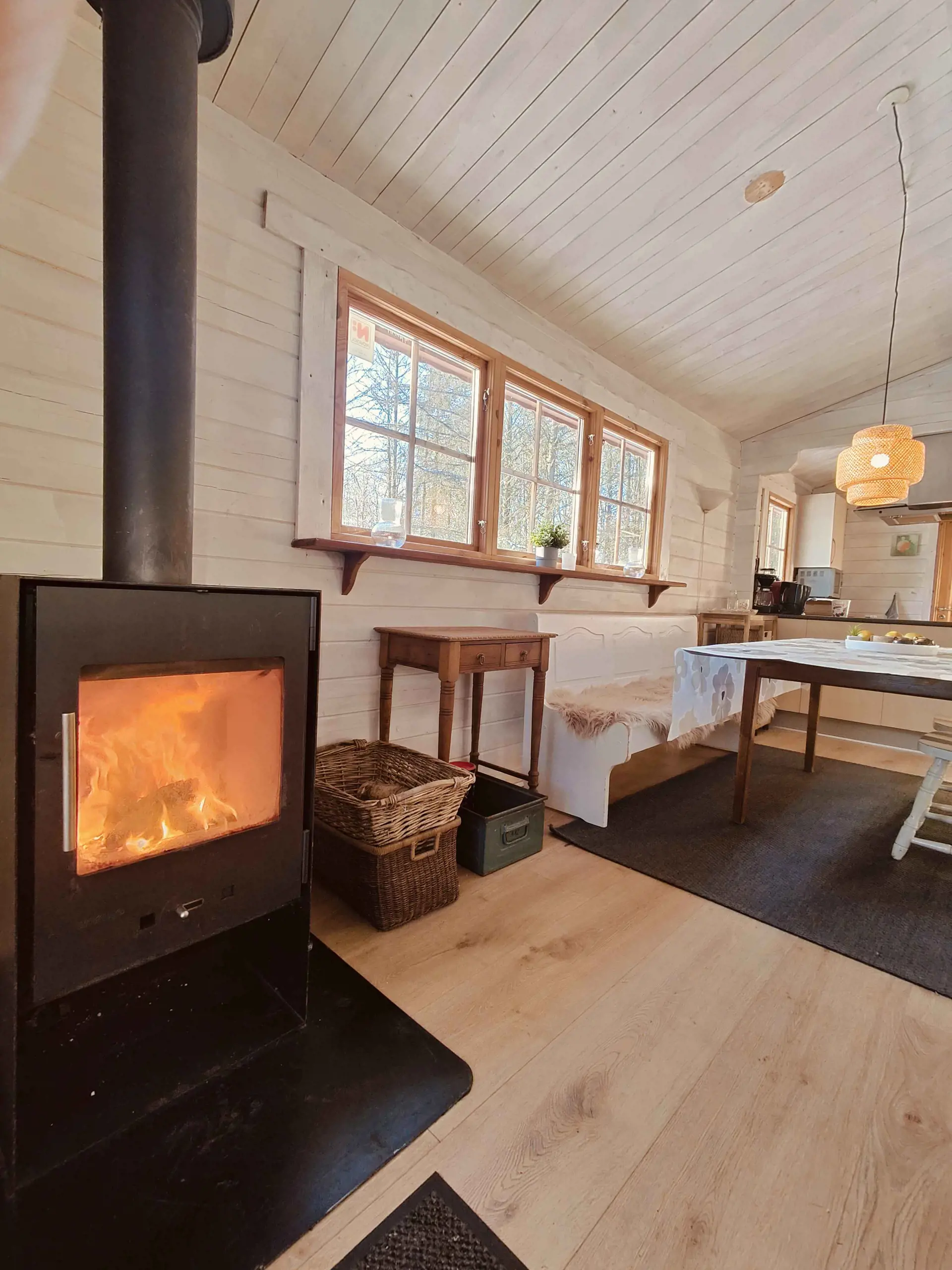 Das Grundstück ist teilweise ungestört und von Natur mit reichem Tierleben umgeben. Hier kann man auf der Terrasse entspannen, Abende am Kaminofen genießen oder die Umgebung erkunden. Das Haus bietet sowohl eine offene als auch eine überdachte Terrasse für jedes Wetter.