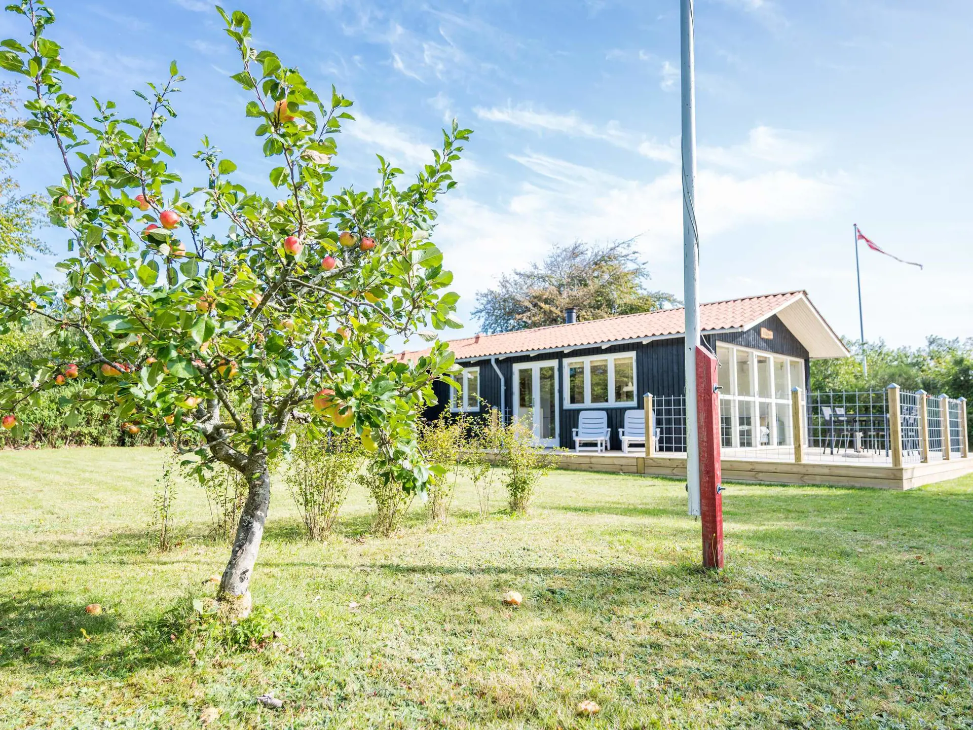 MAX. 1 KLEINER HUND ERLAUBT - Auf einem attraktiven Rasengrundstück mit schützender Hecke finden Sie nahe Skaven Strand dieses kleinere, aber gemütlich eingerichtete Ferienhaus. Es wurde 2020 innen und außen komplett renoviert. Die helle Küche und das gemütliche Wohnzimmer liegen in offener Verbindung zueinander. Vom Wohnzimmer aus haben Sie Zugang zu einer schönen Holzterrasse und weiter zur Rasenfläche. Im Ferienhaus stehen drei Schlafzimmer bereit: eines mit Doppelbett, das zweite mit aufklappbarer Doppelliege (Tagesbett), das dritte mit Etagenbett. Ein schönes Reiseziel für die kleine Familie oder ein Paar mit Hund.