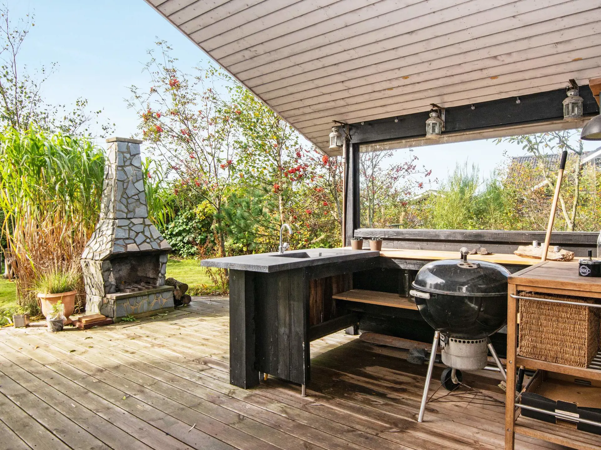 Außenküche, z.B. zum Grillen, wo es auch ein Outdoor-Spa gibt, des zuvor eigenhändig gefangenen Fisches.