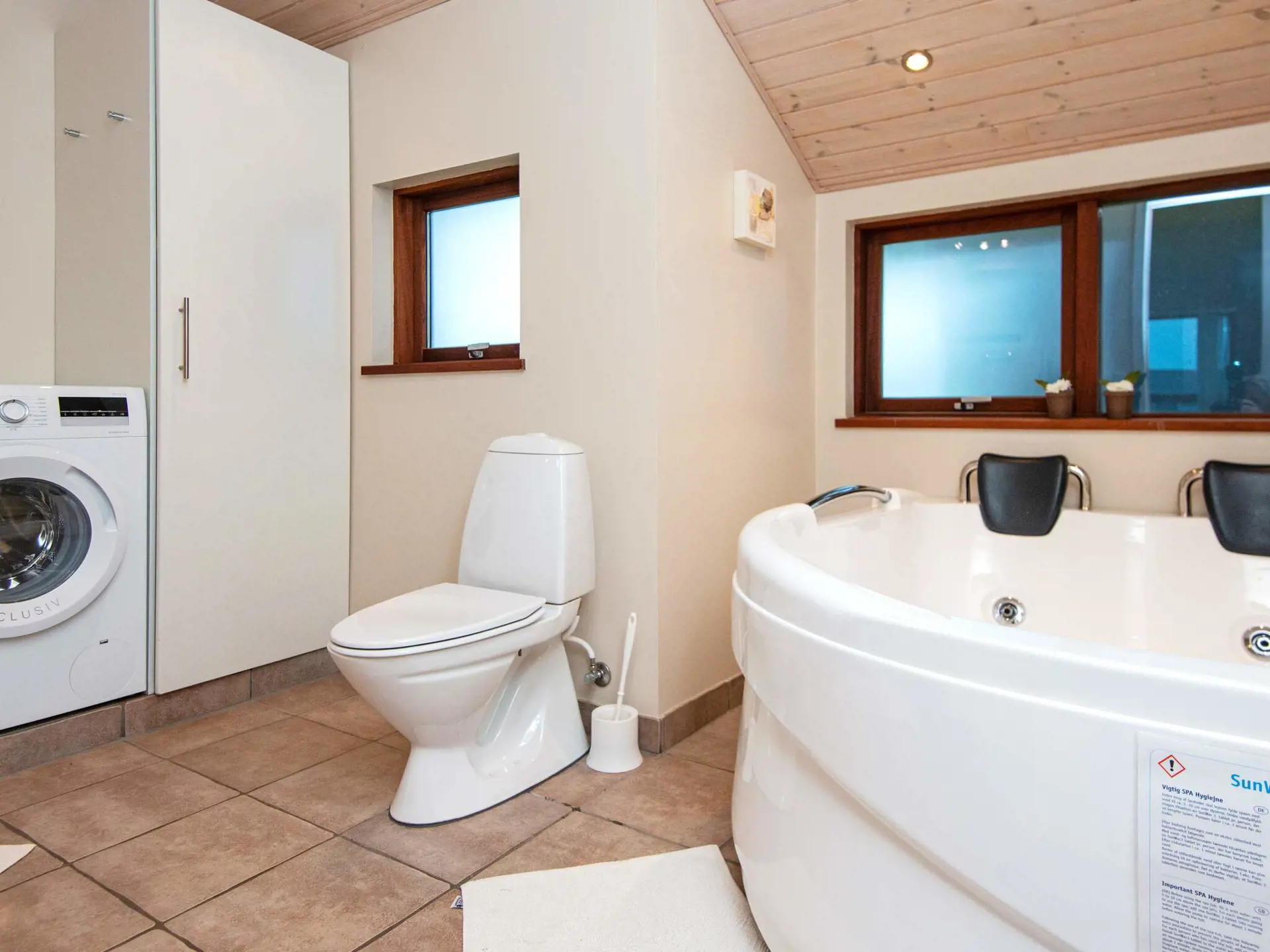 u.a. über einen Whirlpool. Hohe Decken, viele Fenster und die helle