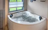 Dieses charmante Haus ist der ideale Rückzugsort für Ihre Auszeit vom Alltag. Große Fenster lassen viel warmes Tageslicht ins Innere, während Sie einen schönen Blick ins Grüne genießen. Hören Sie Ihre Lieblingsmusik und kochen Sie gemeinsam eine köstliche Mahlzeit, die Sie mit einem Glas Wein servieren. An kühleren Abenden entzünden Sie den Kaminofen, der für wohlige Wärme sorgt.