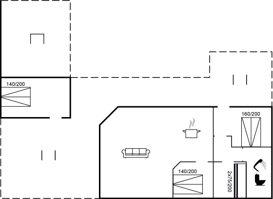 Das Sofa lädt zum Entspannen ein – mit dem Knistern des Kaminofens im Hintergrund. Zum Ferienhaus gehört auch ein gemütliches Gästehaus mit Doppelbett und viel Platz. Es ist der perfekte Ort für Teenager oder auch ein idealer Rückzugsort mit einem guten Buch, wenn du mal eine kleine Pause vom Beisammensein brauchst.