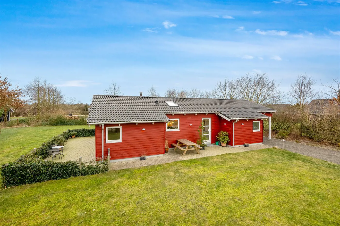 Die Ferienunterkunft liegt auf einem 1250 m² großen Naturgrundstück. Die Entfernung zum Meer beträgt 18000 m. Die Entfernung zum Fjord beträgt 700 m. Es steht ein offenes Terrassenareal zur Verfügung. Außerdem gibt es überdachte Terrasse. Fußballtor. Parkplatz auf dem Grundstück.