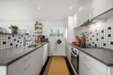 Die Küche ist mit Kühlschrank ausgestattet. Außerdem gibt es 4 Keramik-Kochfelder, Umluftofen, Mikrowelle sowie Geschirrspüler.