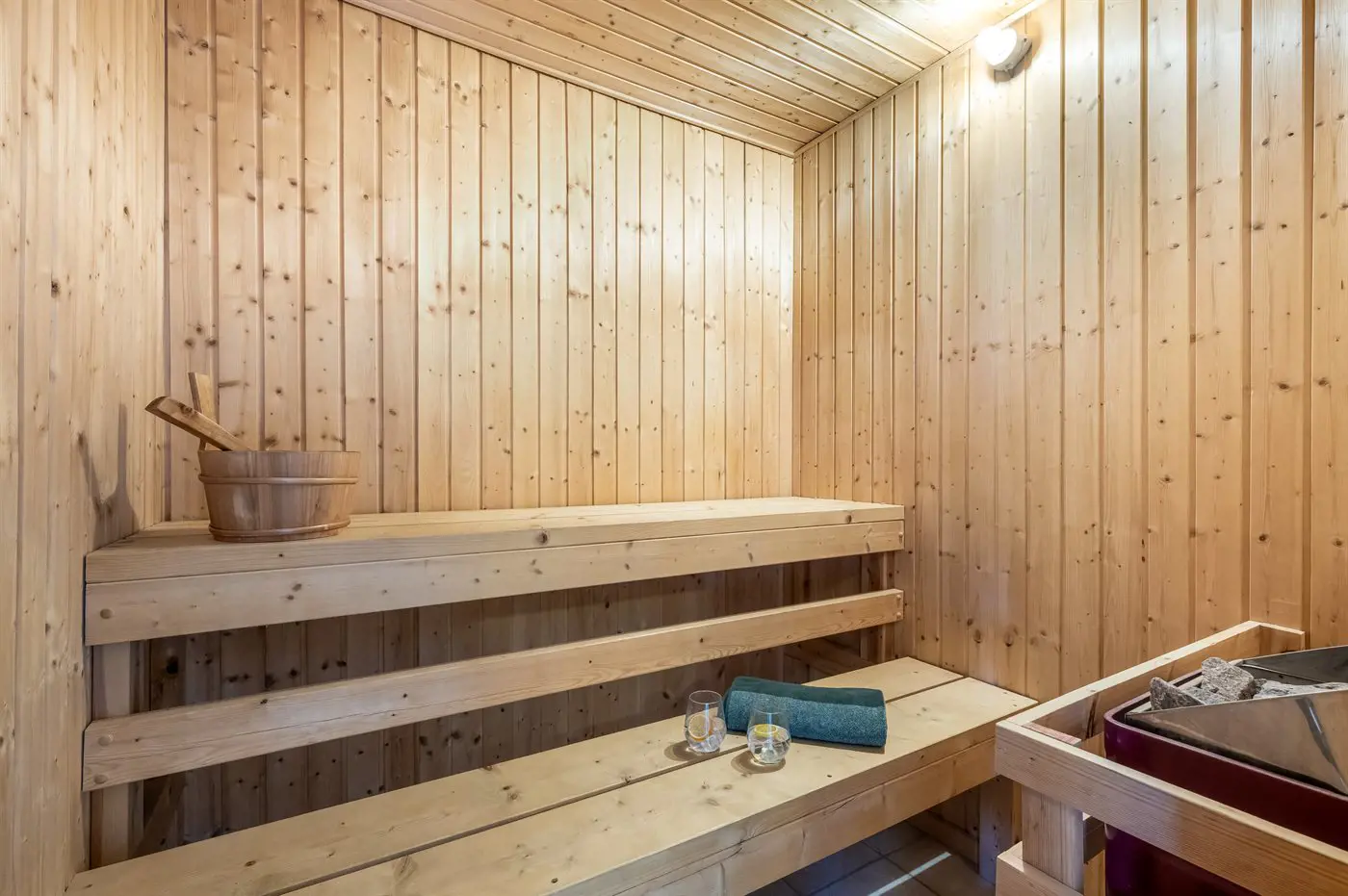 Es gibt 1 Badezimmer mit Duschnische und 1 Toilette. Es steht eine Sauna zur Verfügung in der Sie sich so richtig entspannen können.