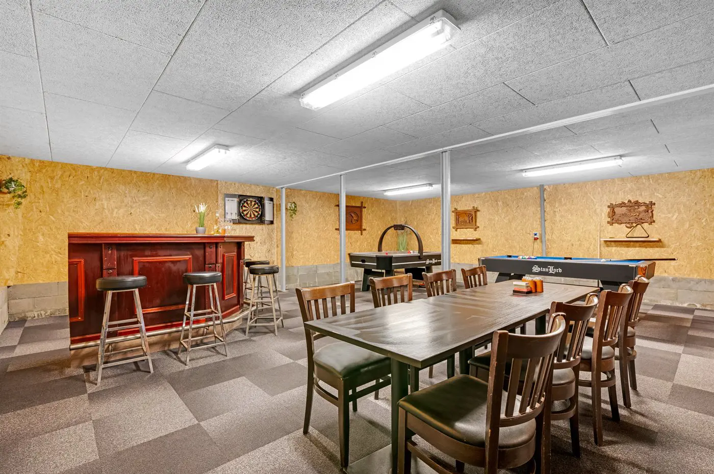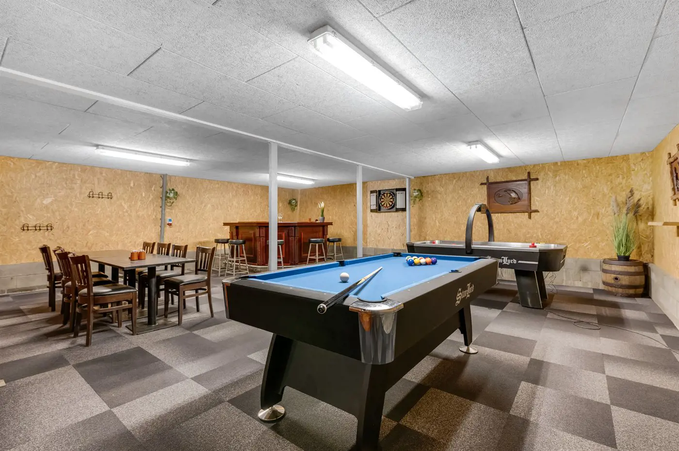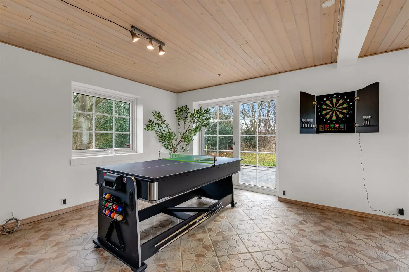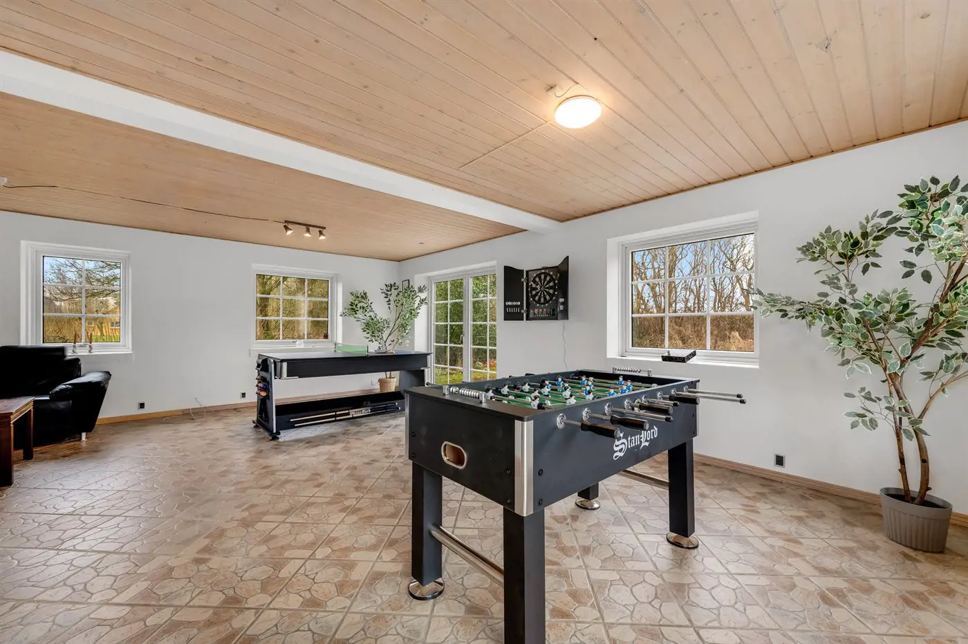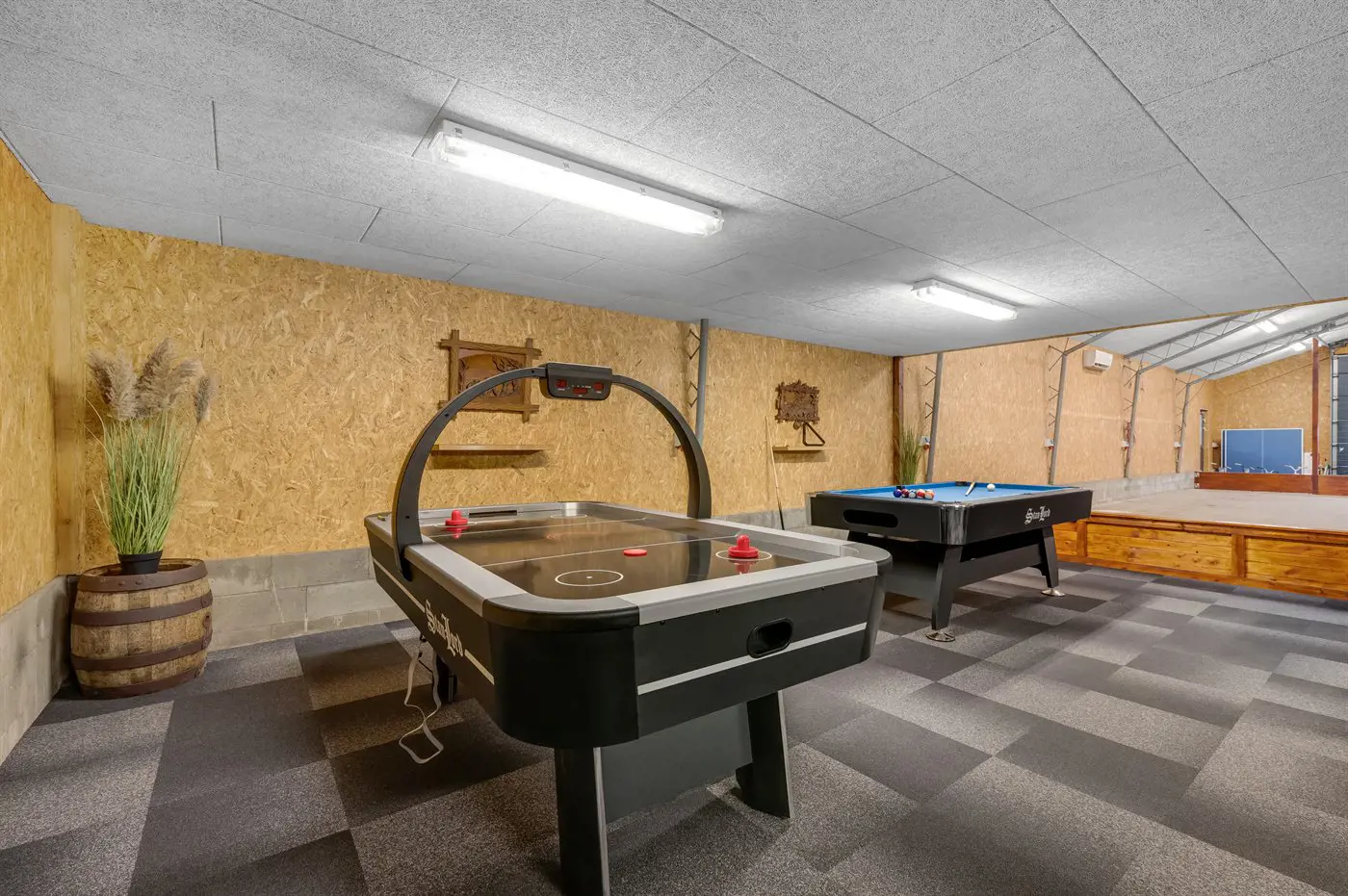 Hobbyraum mit: Pooltisch. Tischtennis. Dart. Airhockey. Tischfußball.