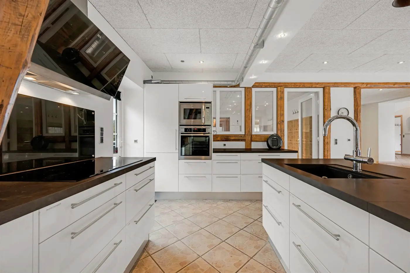 Die Küche ist mit 2 Kühlschränke ausgestattet . Außerdem gibt es 4 Induktions-Kochzonen, Umluftofen, Mikrowelle sowie Geschirrspüler.