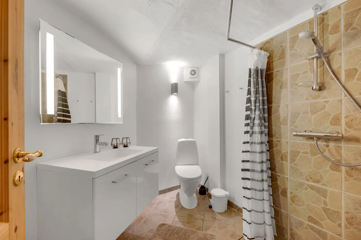 Es gibt 4 Badezimmer mit Duschnische und 4 Toiletten, davon 1 Gästetoilette. Fußbodenheizung in 3 Badezimmern. Es steht eine Sauna zur Verfügung in der Sie sich so richtig entspannen können.