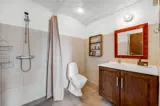 Die sichtbaren Holzbalken, die wunderschönen Steinböden und die gewölbte Decke im Poolbereich verleihen dem Haus eine warme und rustikale Atmosphäre.
