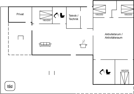 Im Aktivitätsraum gibt es einen 8-Fuß-Billardtisch und eine elektronische Dartscheibe. Auch eine große Sofaecke mit 65-Zoll-Smart-TV und Surroundanlage steht zur Verfügung, die für eine fantastische Kinoatmosphäre sorgt sowie Apple TV und ein Philips Lautsprecher für Bluetooth. Es gibt eine PlayStation 5 (Digital) mit Disc-Funktion sowie zwei Controller. Vom Aktivitätsraum haben Sie Zugang zu den 2 offenen Obergeschossen, die sich an den beiden Seiten des Hauses befinden und durch eine Galerie verbunden sind. Die Galerie betritt man über eine mit einem Kindergitter gesicherte Treppe.