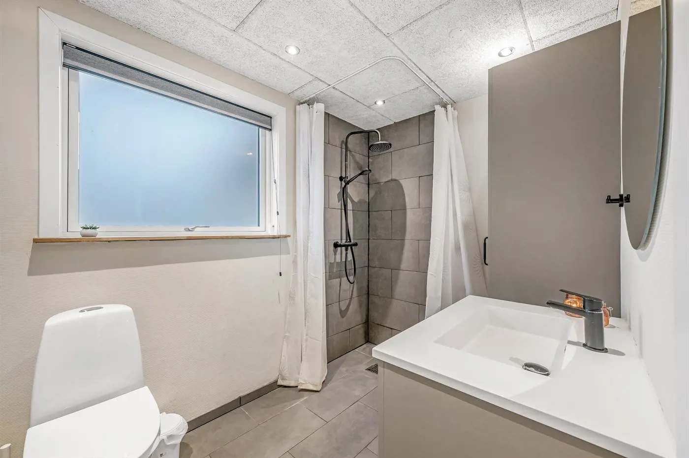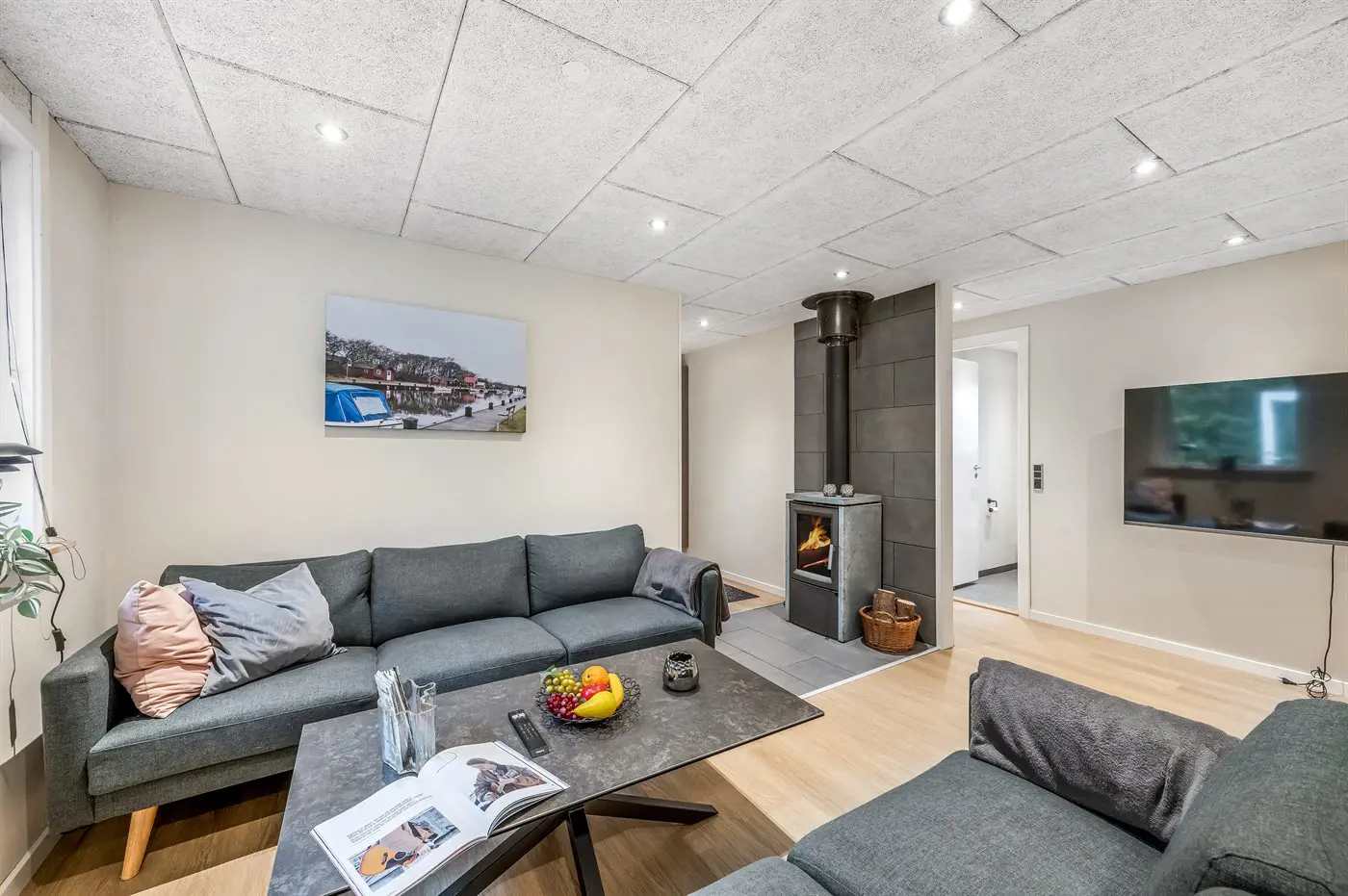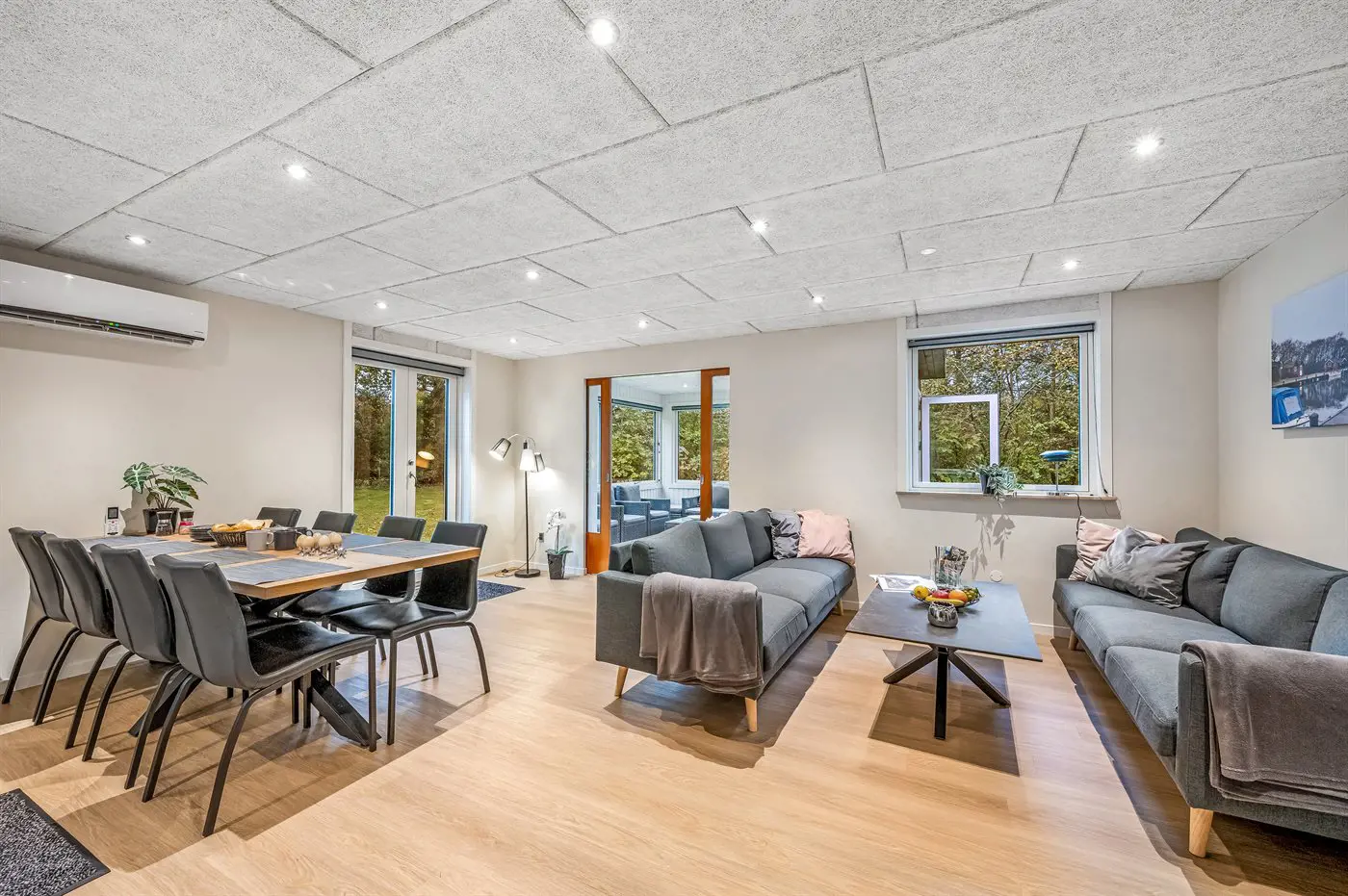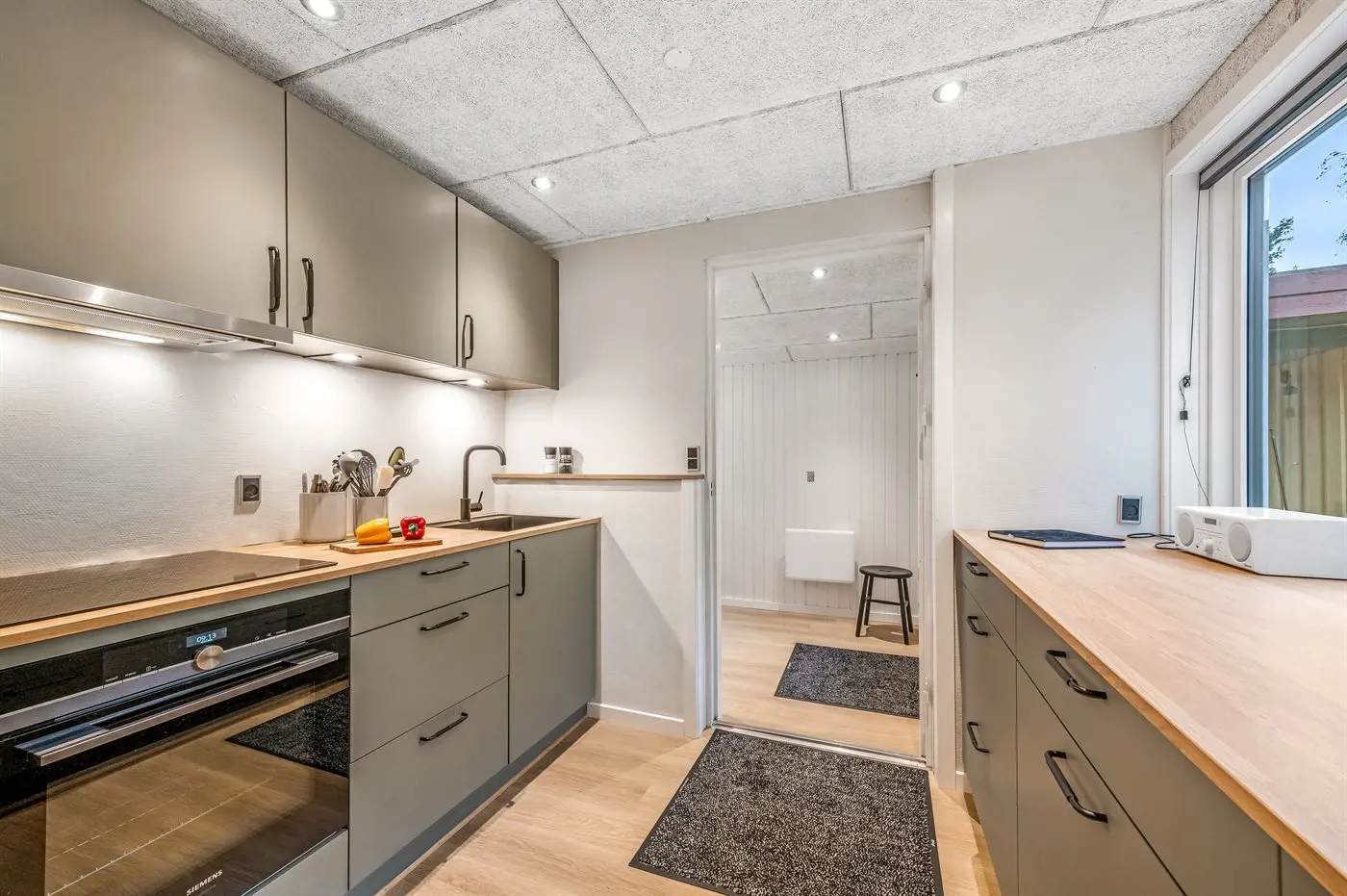 Die Ferienunterkunft liegt auf einem 1200 m² großen Naturgrundstück. Die Entfernung zum Fjord beträgt 300 m. Die nächste Einkaufsmöglichkeit liegt 850 m entfernt. In einem Abstand von 7500 m gibt es einen Golfplatz. Es steht ein offenes Terrassenareal zur Verfügung. Zutritt zu einem Wintergarten. Außensauna. Außendusche. Es ist ein Ladestecker für Elektroautos installiert. Mit einer Ladeleistung von 11 kW. Parkplatz auf dem Grundstück.