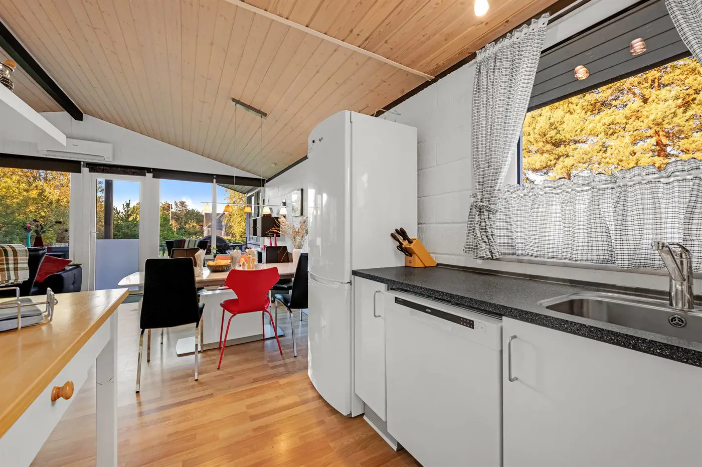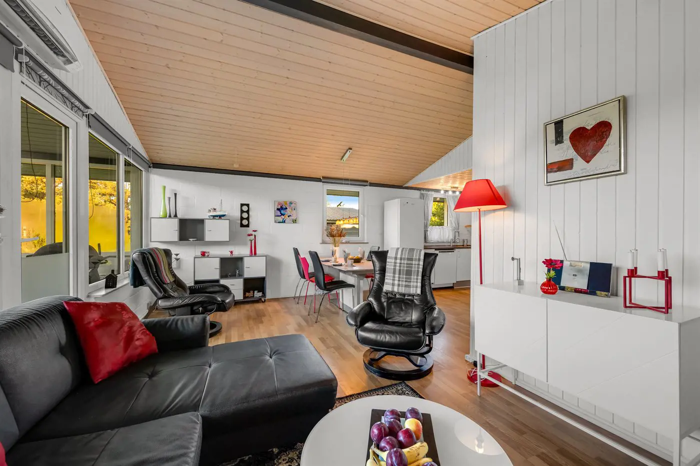 Das Ferienhaus eignet sich für 6 Personen. 2 der Schlafplätze eignen sich jedoch nur für größere Kinder (4-11 Jahre). Die Ferienunterkunft hat eine Wohnfläche von 70 m² und wurde 1975 gebaut. 2012 wurde die Ferienunterkunft renoviert. Es ist erlaubt 2 Haustiere mitzubringen. In der Ferienunterkunft ist eine energiesparende Luft zu Luft Wärmepumpe installiert. Die Ferienunterkunft ist mit Waschmaschine ausgestattet. Wäschetrockner. Tiefkühlmöglichkeit mit 60 Liter Nutzinhalt. Es gibt außerdem einen Kaminofen. Für die jüngsten Feriengäste ist 1 Kinderhochstuhl vorhanden.