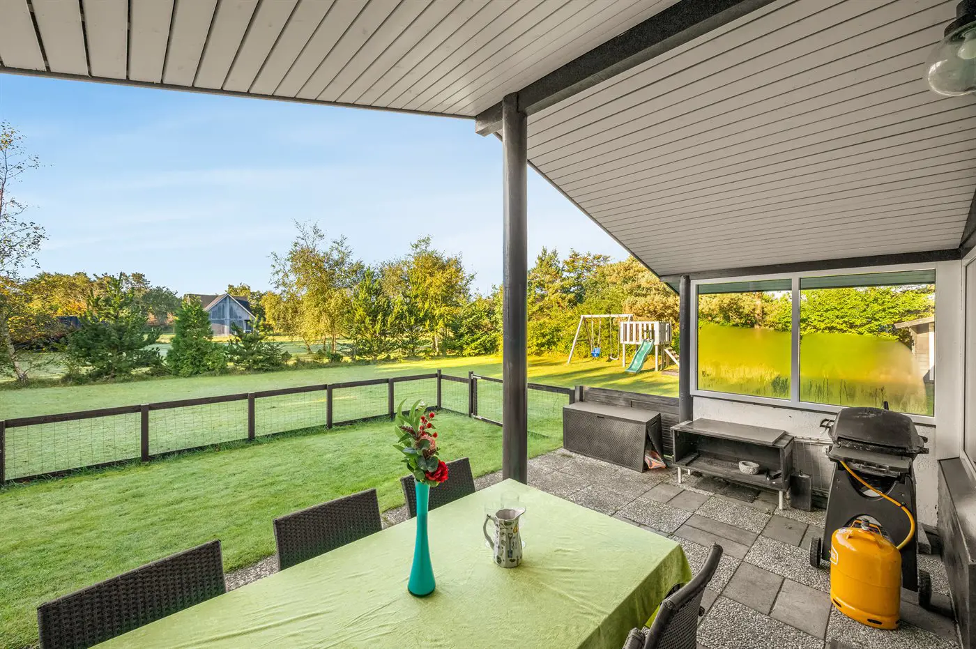 Die Ferienunterkunft liegt auf einem 1165 m² großen Naturgrundstück. Die Entfernung zum Fjord beträgt 400 m. Die nächste Einkaufsmöglichkeit liegt 6000 m entfernt. Es steht ein offenes Terrassenareal zur Verfügung. Außerdem gibt es überdachte Terrasse. Zutritt zu einem Wintergarten. Schaukel. Sandkasten. Spielturm. Rutsche. Die Entfernung zu einem Spielplatz beträgt 300 m.