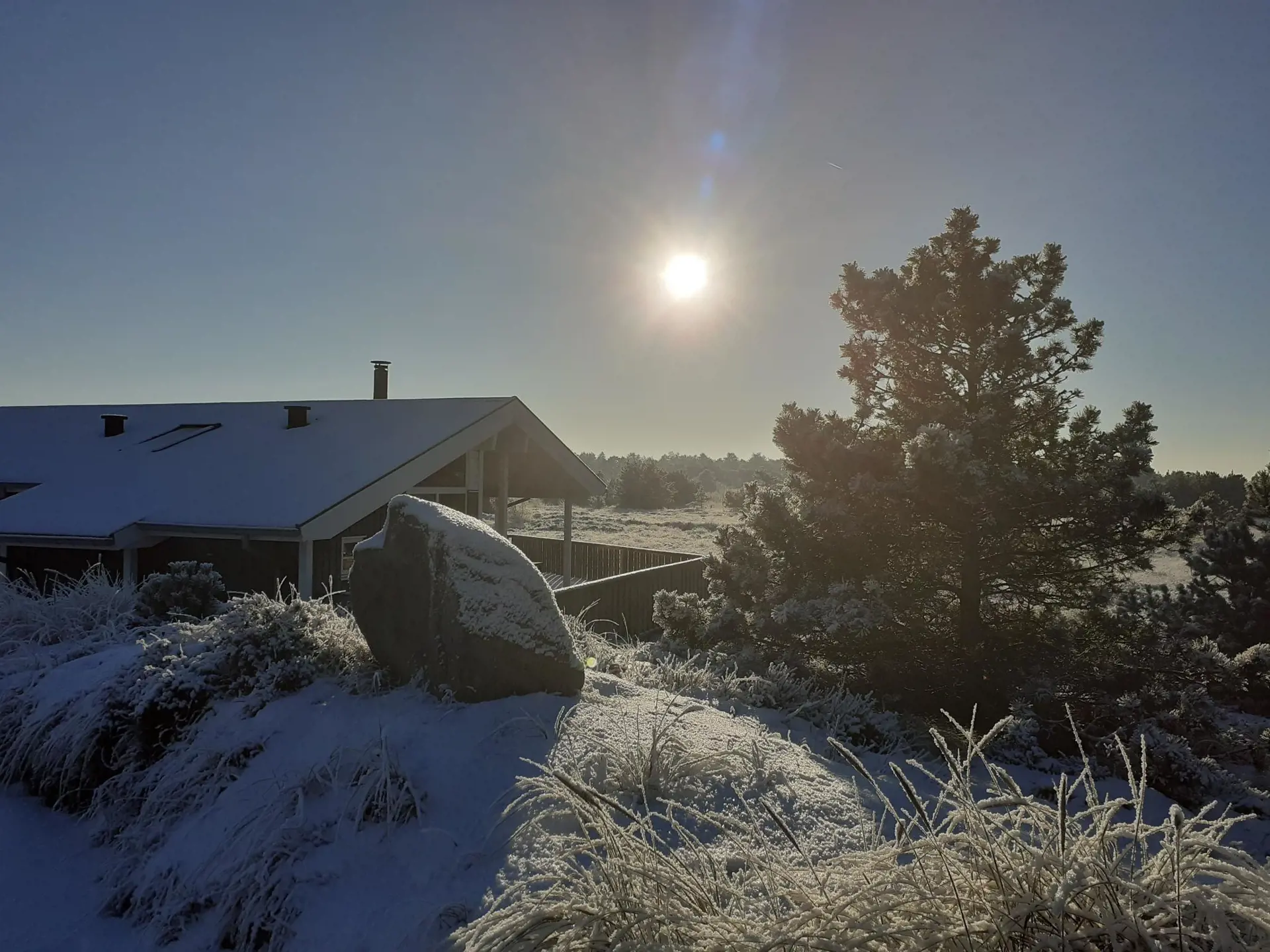 Der moderne Wohnraum mit Panoramafenstern bietet eine fantastische Aussicht in die Heidelandschaft, wo oft Reh, Fuchs und Fasan vorbeikommen. Der offene Giebel bietet ein besonders schönes Wohnambiente, hier kann man dem prasselndem Feuer aus dem Kaminofen lauschen, während man ein gutes Buch liest oder einfach die fantastische Aussicht genießt.
