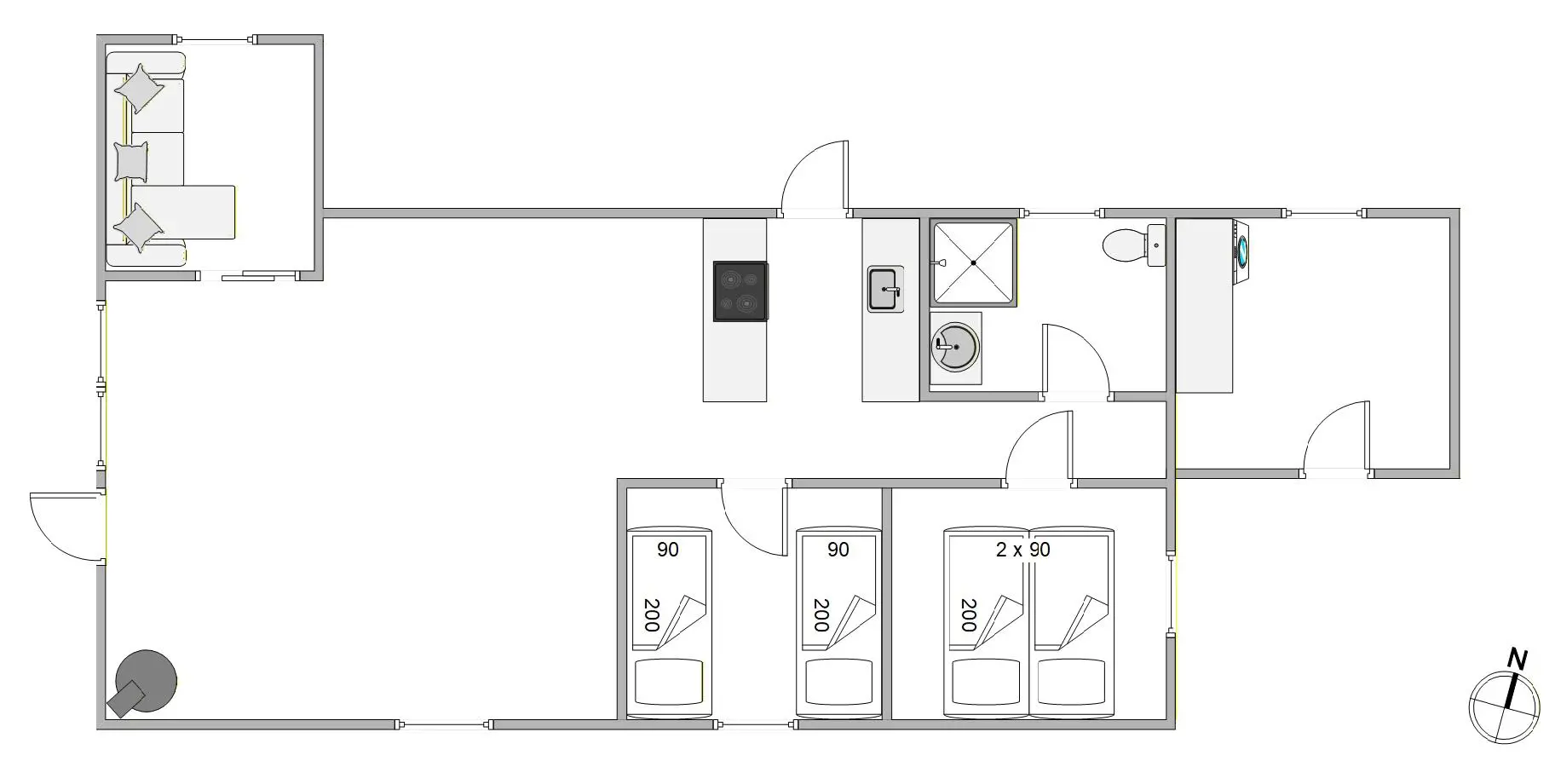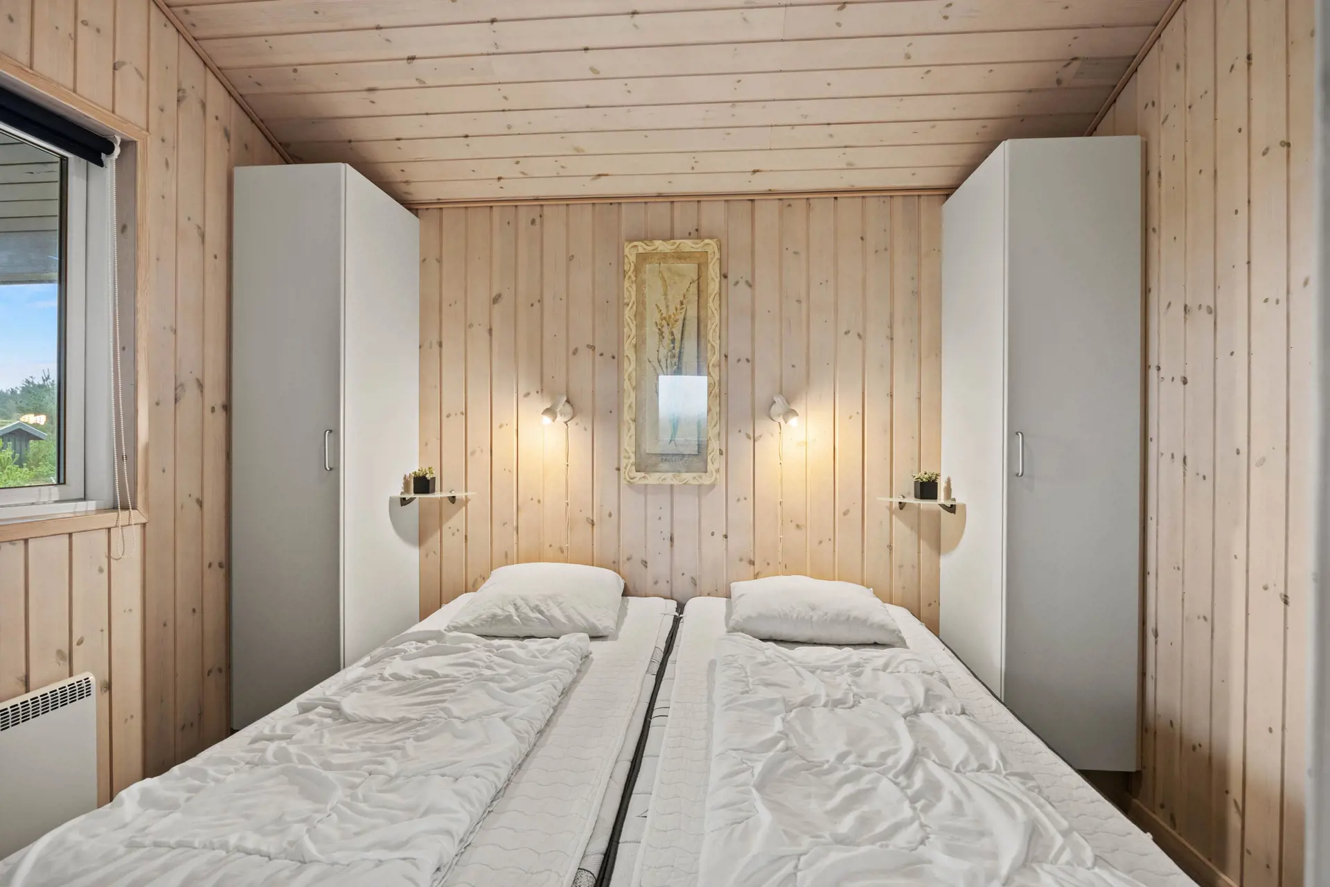 Drei gemütliche Schlafzimmer bieten dir und deinen Liebsten erholsame Nächte. Ein Doppelbett im Hauptschlafzimmer und zwei weitere Zimmer mit Einzelbetten sorgen für guten Schlaf nach langen Tagen voller Entdeckungen. Vielleicht kommst du gerade aus den fruchtbaren, verwunschenen Wäldern Rømøs zurück, in denen das Leben in jeder Ecke raschelt – oder aus einem Spaziergang durch die offene Heidelandschaft, die sich bis zum Horizont erstreckt.