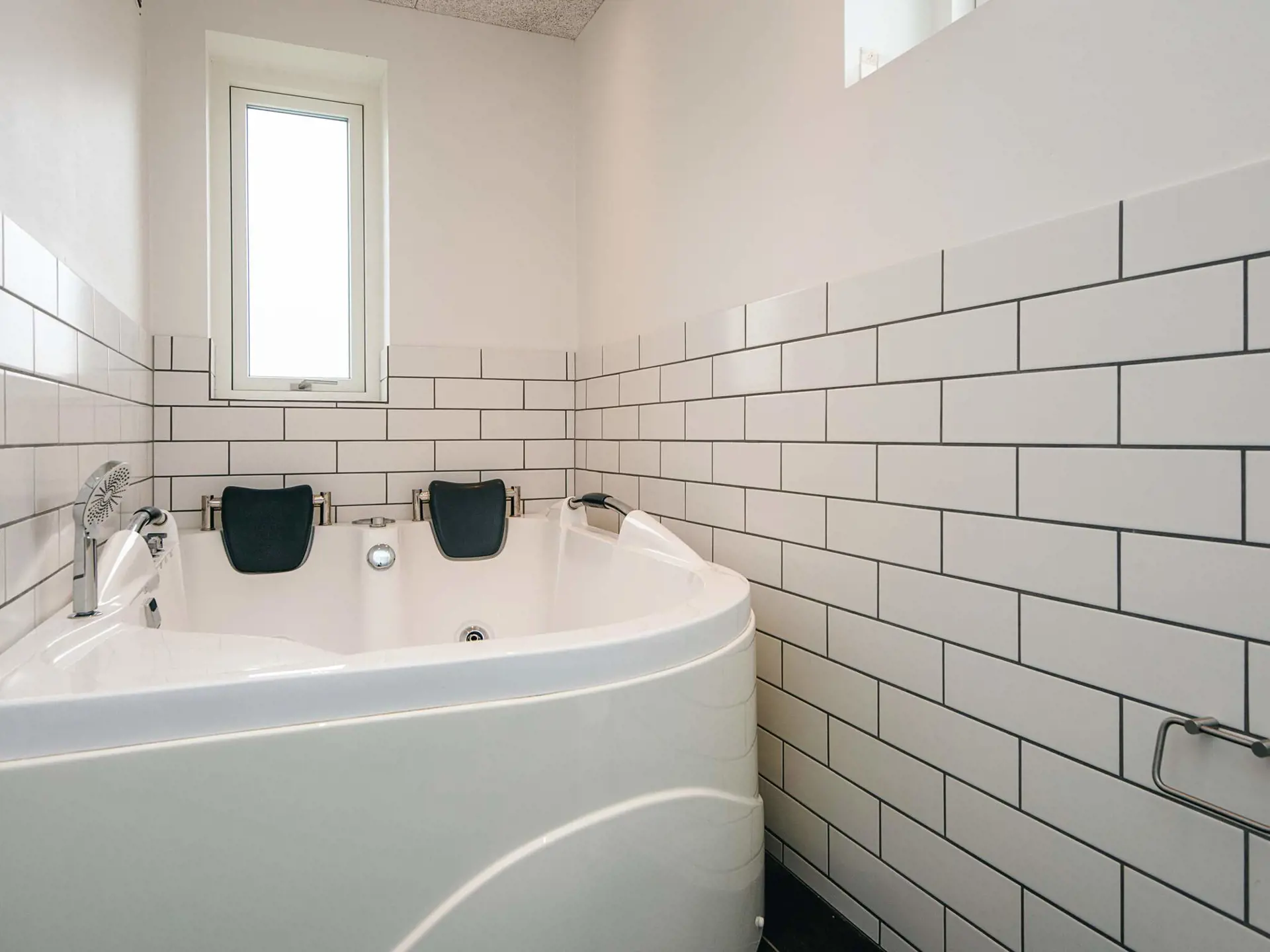 Eines der beiden Badezimmer des Hauses verfügt über eine Whirlwanne für zwei Personen sowie einen Zugang zur Sauna. Die moderne, helle Küche hat einen offen integrierten Ess- und Aufenthaltsbereich mit Zugang zur großen Terrassenfläche davor, auf der Grill und Sitzgelegenheiten zur Verfügung stehen. Oben in der 1. Etage liegt zudem ein Wohnzimmer mit Zugang zu einem Balkon mit kleinem Ausblick zum Golfplatz und dem Wattenmeer. Außerdem drei helle Schlafzimmer mit je einem Doppelbett im Haus.