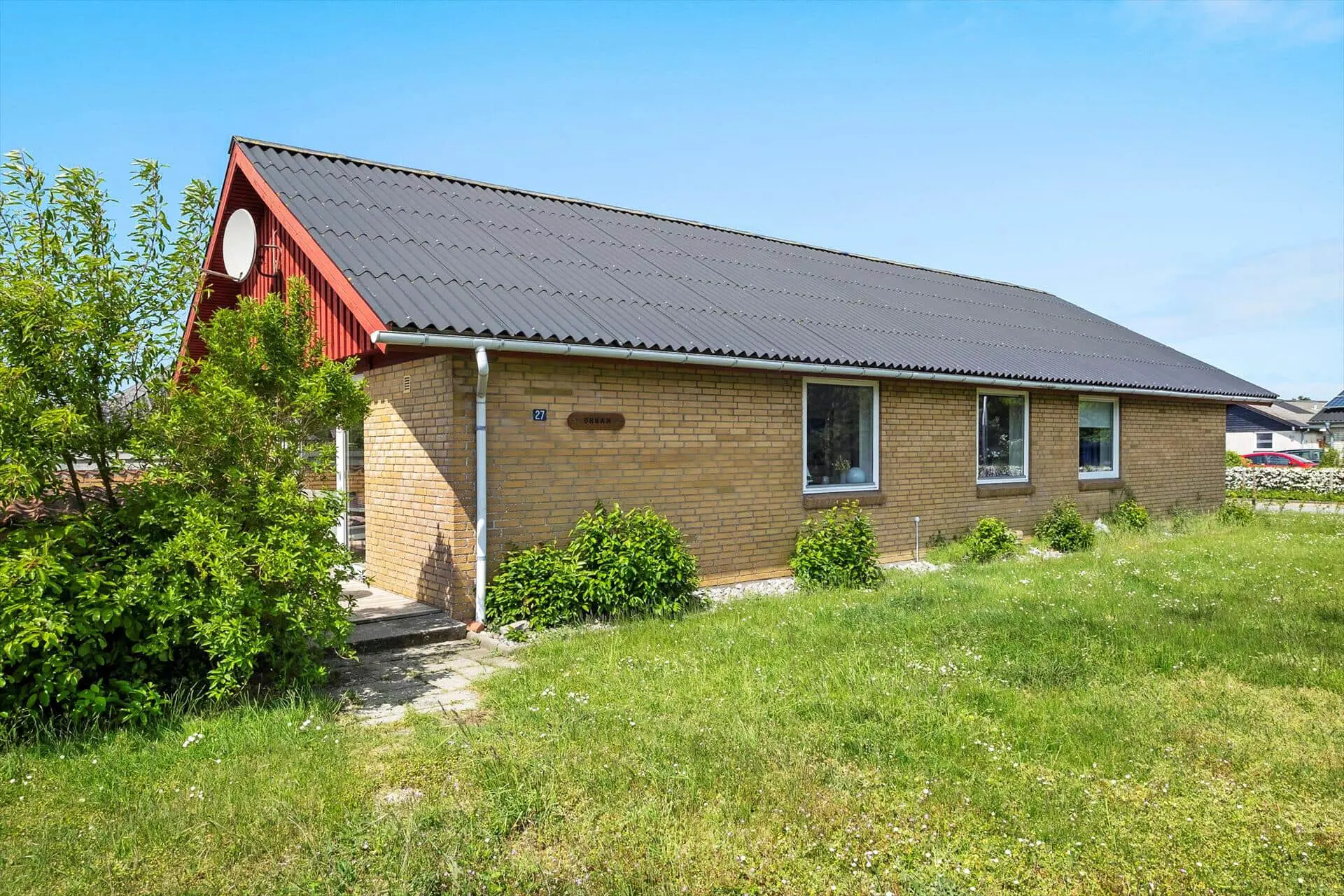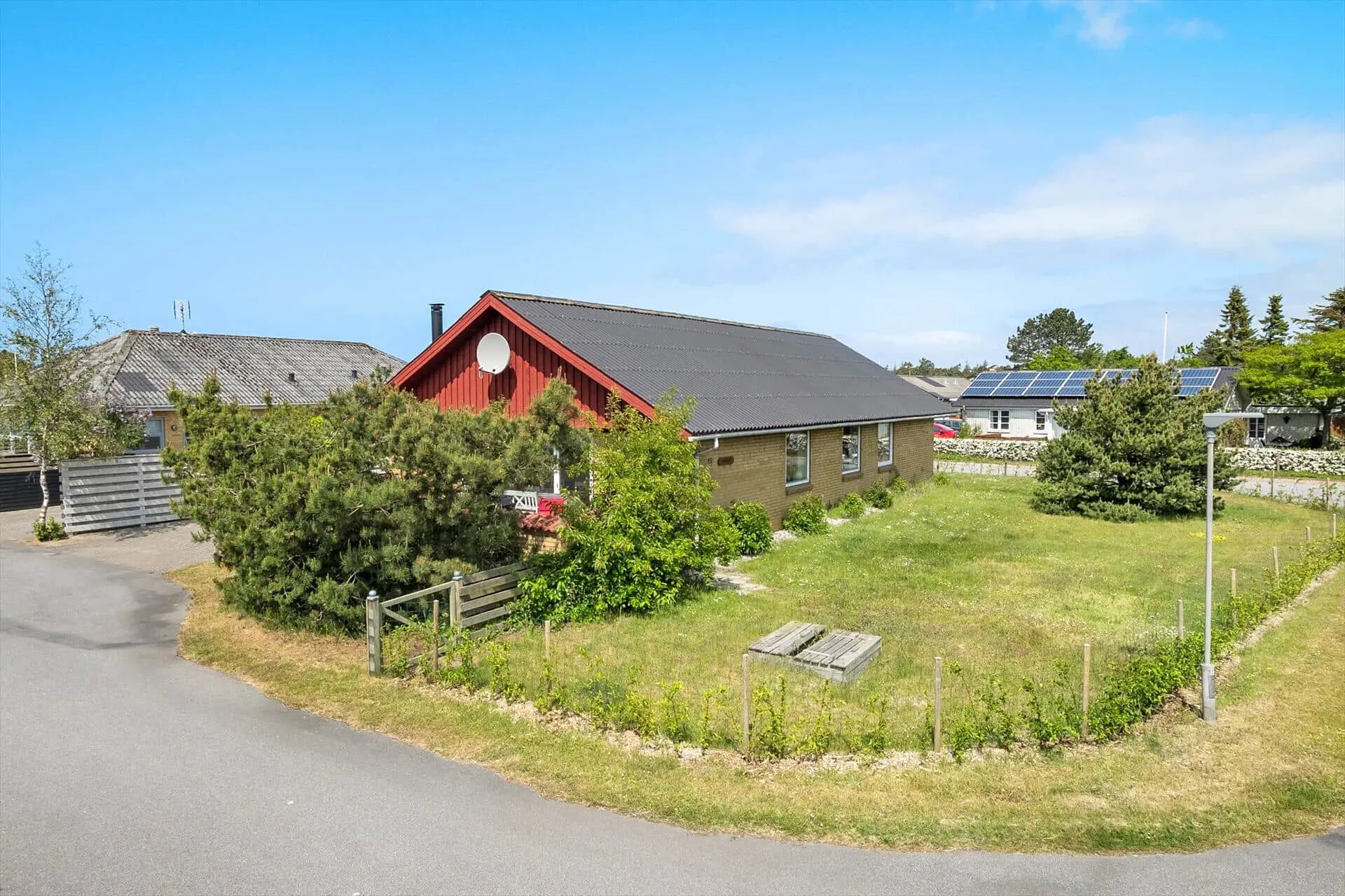 Für Spiel und Freude haben Sie im Garten Platz genug, und für die kleinen Gäste stehen eine Schaukel und eine Sandkiste bereit. Die Rasenfläche ist komplett umzäunt, was von Vorteil ist, wenn vierbeinige Familienmitglieder mit dabei sind – oder wenn die Kinder klein und entdeckungsfreudig sind. Die Südterrasse des Hauses ist durch eine Mauer abgeschirmt und mit Liegestühlen, Sonnenschirm, Grill und schönen Gartenmöbeln ausgestattet. In der Einfahrt ist reichlich Platz zum Parken Ihres Fahrzeugs.