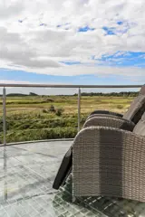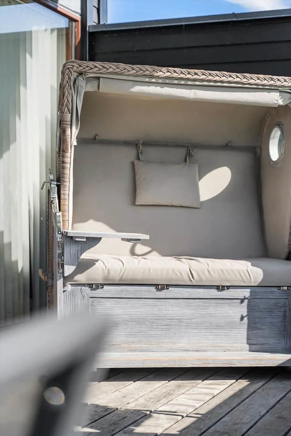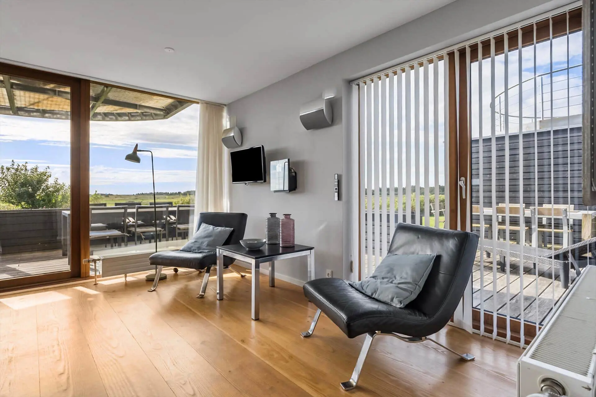 Auch von der nach Süden ausgerichteten Terrasse kannst du die Aussicht in dich aufsaugen. Außerdem kannst du auf den Balkon im Obergeschoss gehen, von dem du eine hervorragende Aussicht hast und die Fährverbindung zwischen Rømø und Sylt verfolgen kannst. Dies ist eine gute Möglichkeit, um in Urlaubsstimmung zu kommen.
