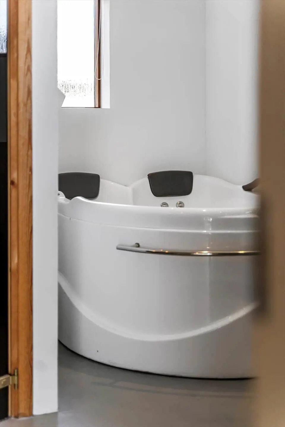 Alle drei Schlafzimmer und die zwei Badezimmer sind auf den zwei Etagen des Hauses verteilt. Die Schlafzimmer sind alle mit Doppelbetten und TV eingerichtet und eines der Badezimmer wurde mit einem Whirlpool und einer Sauna ausgestattet.