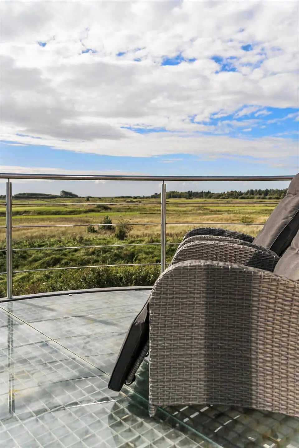In diesem Ferienhaus kannst du die herrliche Aussicht auf den großen Links-Platz des Golfklubs Rømø und dem Wattenmeer im Hintergrund genießen.
