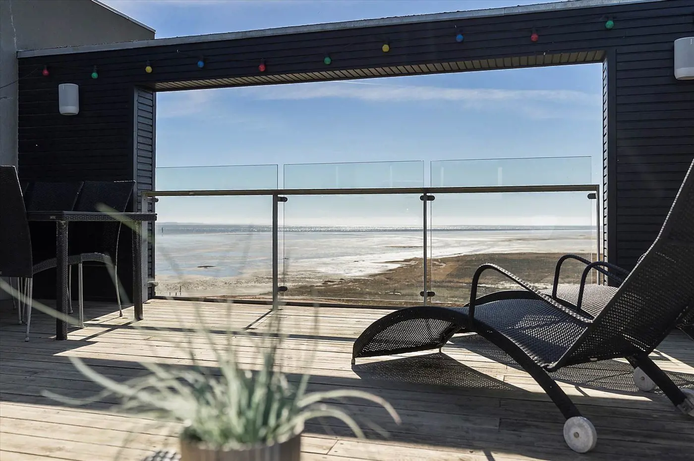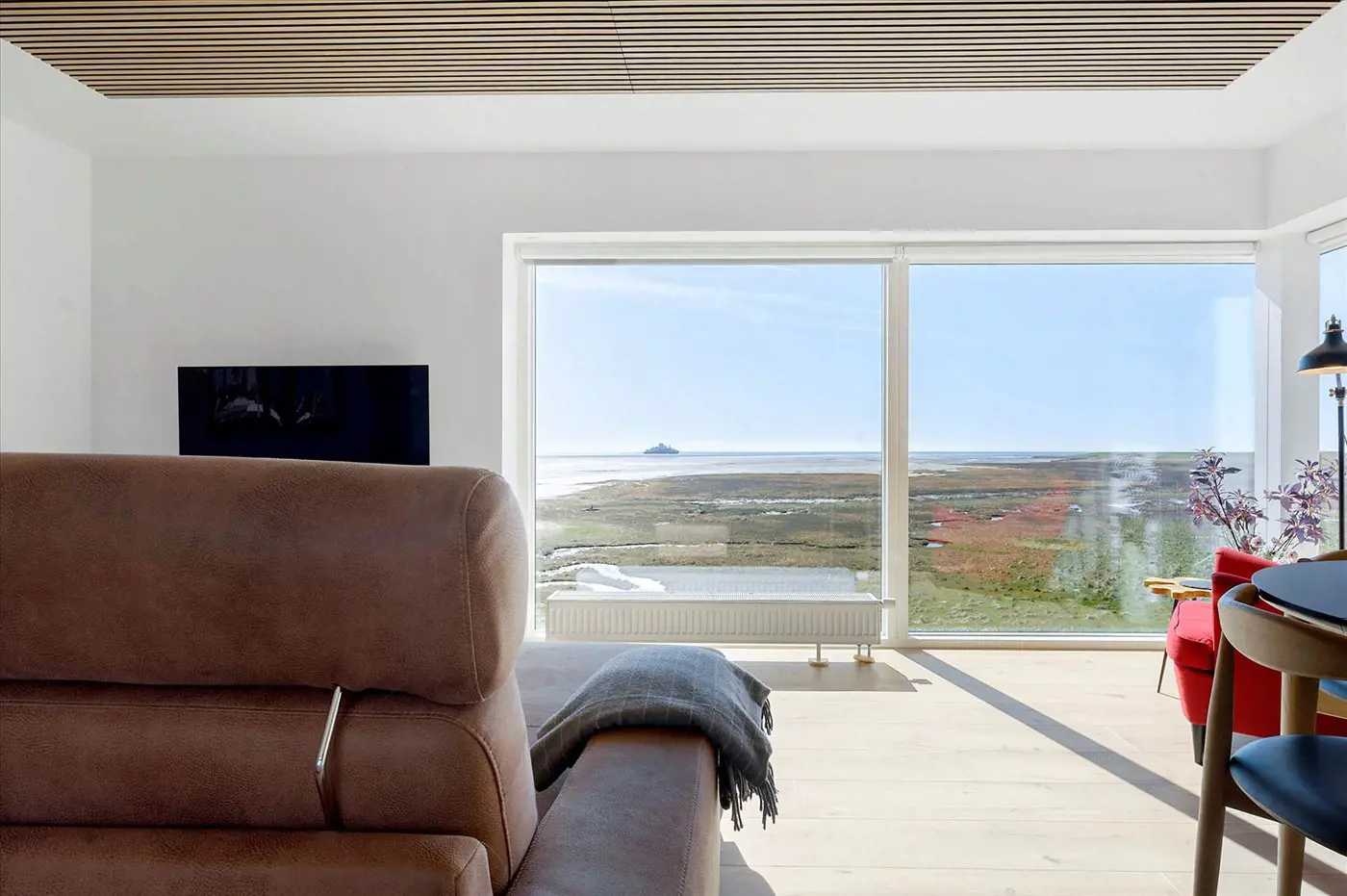 Als Gast in diesem Ferienhaus bekommst du den besten Panoramablick, den es auf Rømø gibt, direkt vom Wohnzimmer aus. Du kannst außerdem das Naturphänomen „sort sol“ aus nächster Nähe erleben und die Fähre beobachten, die nach Sylt fährt.