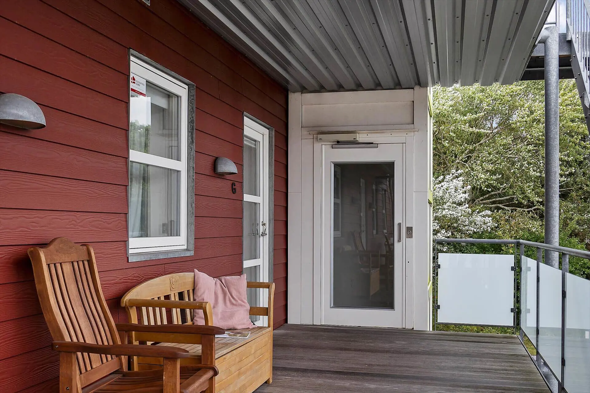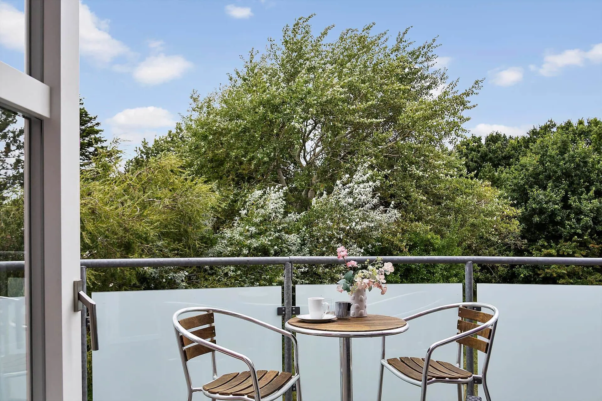Vom privaten Balkon der Wohnung aus hast du Aussicht auf grüne Bäume und blauen Himmel, und zu der einen Seite kannst du den Blick auf das Wattenmeer genießen, welches einen Platz auf der Liste des UNESCO-Welterbes einnimmt. Wattenmeer und Strandwiesen sind auch Bestandteile des Hintergrunds, wenn du dich auf der überdachten Galerie aufhältst, die du gemeinsam mit den Bewohnern der Nachbarwohnung nutzen darfst. Von der Galerie aus kannst du entweder die Treppe oder den Fahrstuhl benutzen, wenn du dich nach unten begeben möchtest, wo ein gekennzeichneter Parkplatz zur Wohnung gehört.