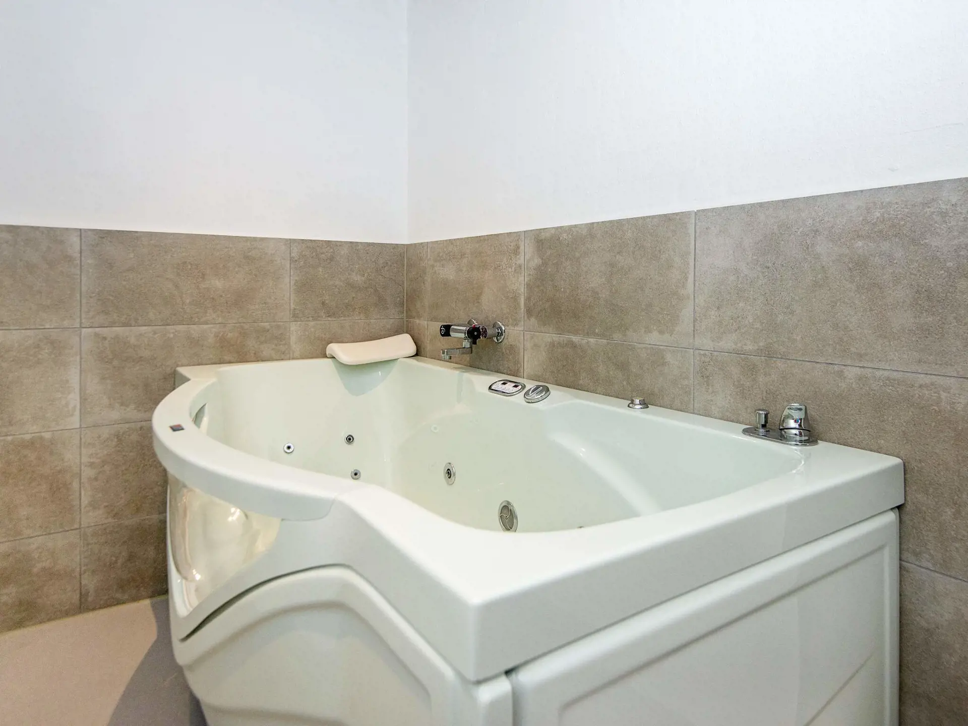 Sie verfügen hier zudem über drei Badezimmer, von denen eines einen Whirlpool und den Zugang zu einer Sauna für bis zu 6 Personen bereit stellt. Das Haus wird energieeffizient mittels einer Wärmepumpe beheizt. Es gibt mehrere Zimmer mit angenehmer Fußbodenheizung.