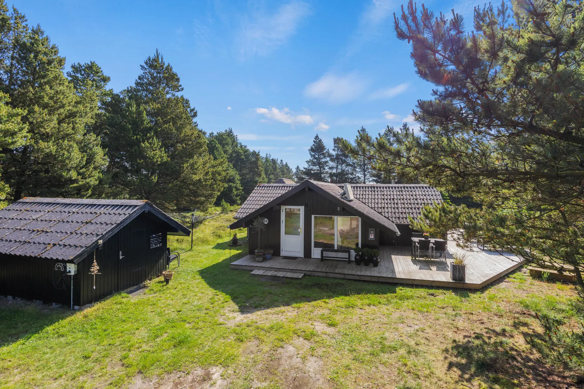 Auf einem 2500 qm großen Naturgrundstück, liegt euer Ferienhaus ganz idyllisch, umgeben von Büschen und Bäumen. Die sonnige Terrasse bietet euch bequeme Gartenmöbel, die zum Verweilen einladen. Auch für eure Kinder gibt es jede Menge zu entdecken. Sie können sich auf der Schaukel, im Sandkasten oder auf dem Trampolin austoben.