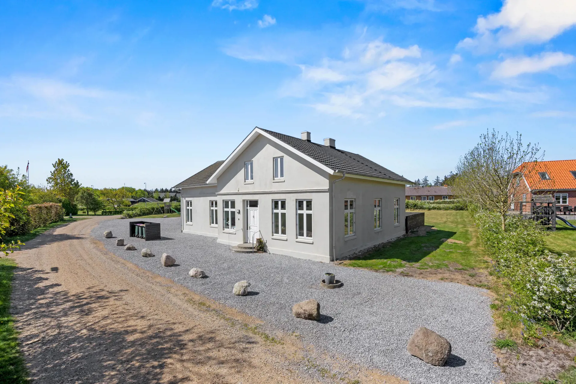 Das großzügige Ferienhaus in Kongsmark ist ein wahres Raumerlebnis mit seiner Wohnfläche von 333 m2. Es beherbergt 7 Schlafzimmer, die mit 6 Doppelbetten und 6 Einzelbetten ausgestattet sind, um sicherzustellen, dass jeder Gast die wohlverdiente Nachtruhe findet. Im Gästehaus findet ihr 2 der insgesamt 6 Doppelbetten und es ist mit eigenem Badezimmer versehen.