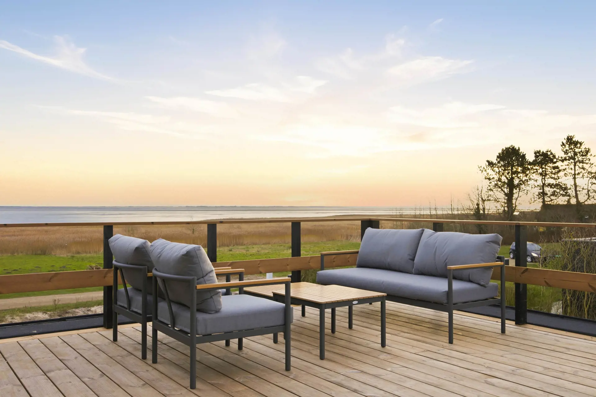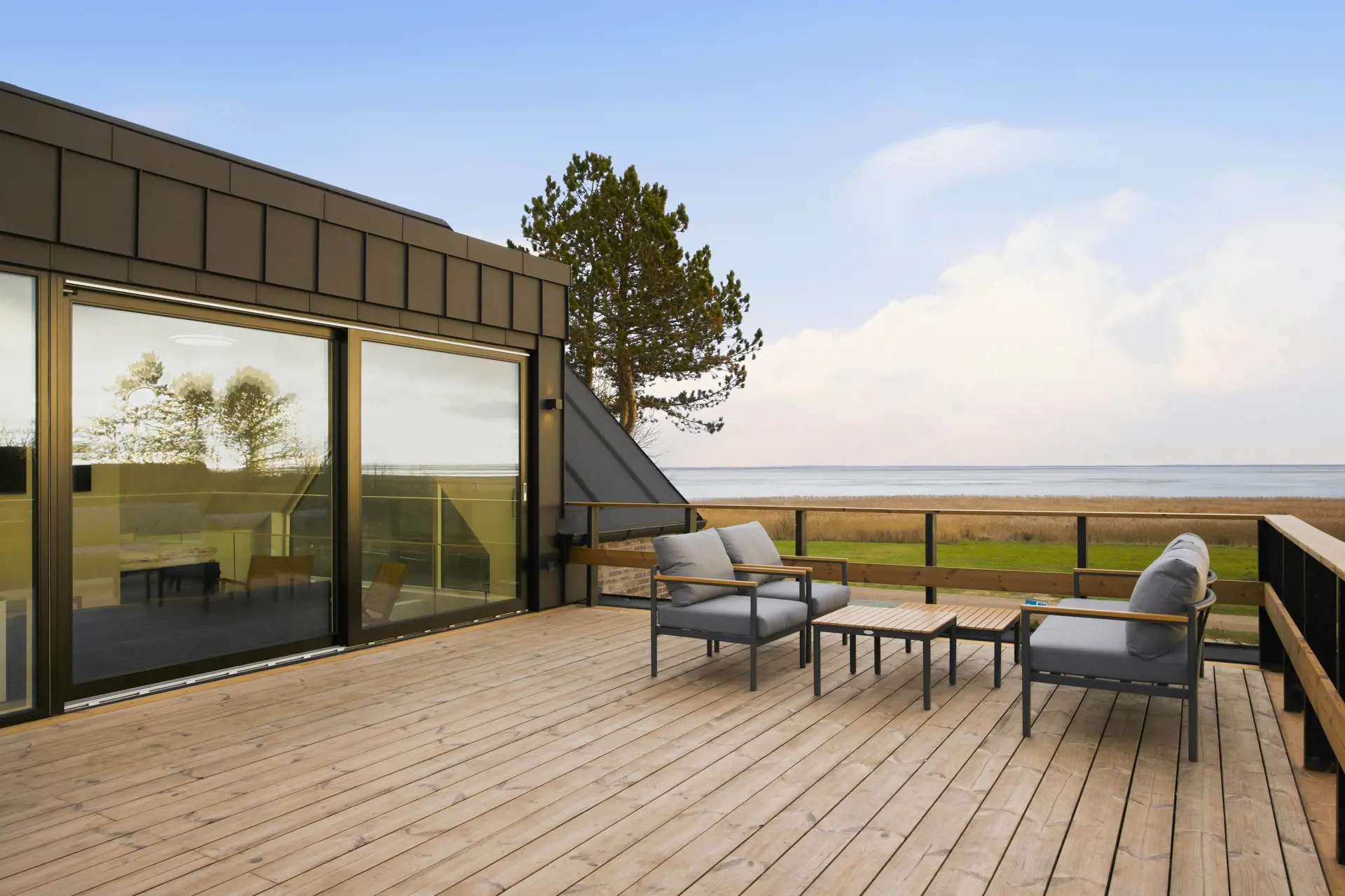 Von der großen Dachterrasse aus genießt ihr vielleicht die schönste Aussicht auf ganz Rømø. Das Grundstück reicht direkt bis ans Wattenmeer und macht die Lage des Hauses zu etwas ganz Besonderem.