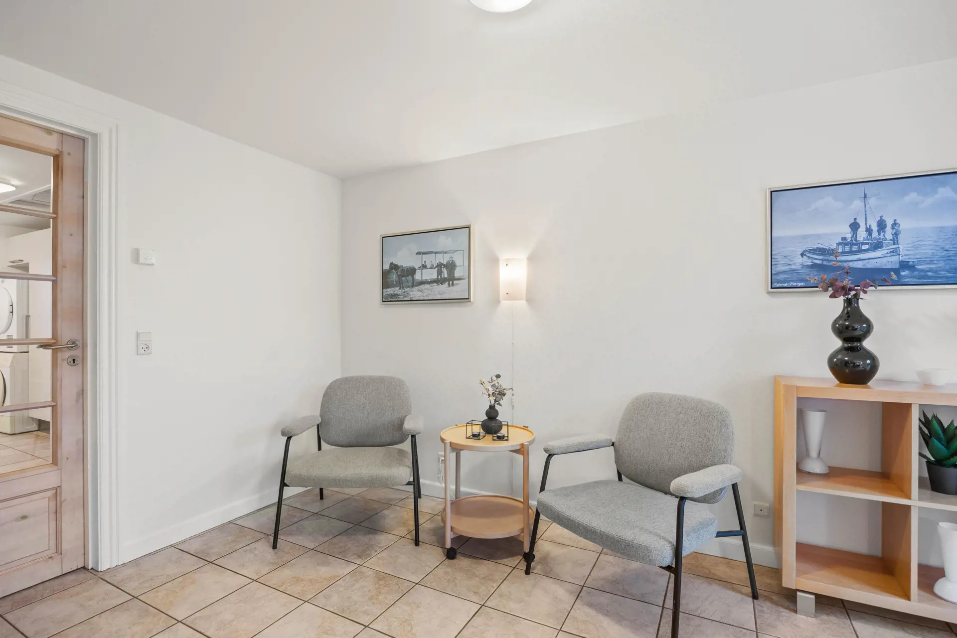 Das 2006 erbaute, reetgedeckte Reihenhaus bietet moderne Annehmlichkeiten gepaart mit klassisch dänischer “Hygge”. Drei geräumige Schlafzimmer mit bequemen Doppelbetten garantieren erholsame Nächte. Zwei Badezimmer, ausgestattet mit Fußbodenheizung, sorgen für höchsten Komfort. Entspannt mit eurem persönlichen Standwasser-Whirlpool und erlebt den puren Luxus direkt vor Ort.