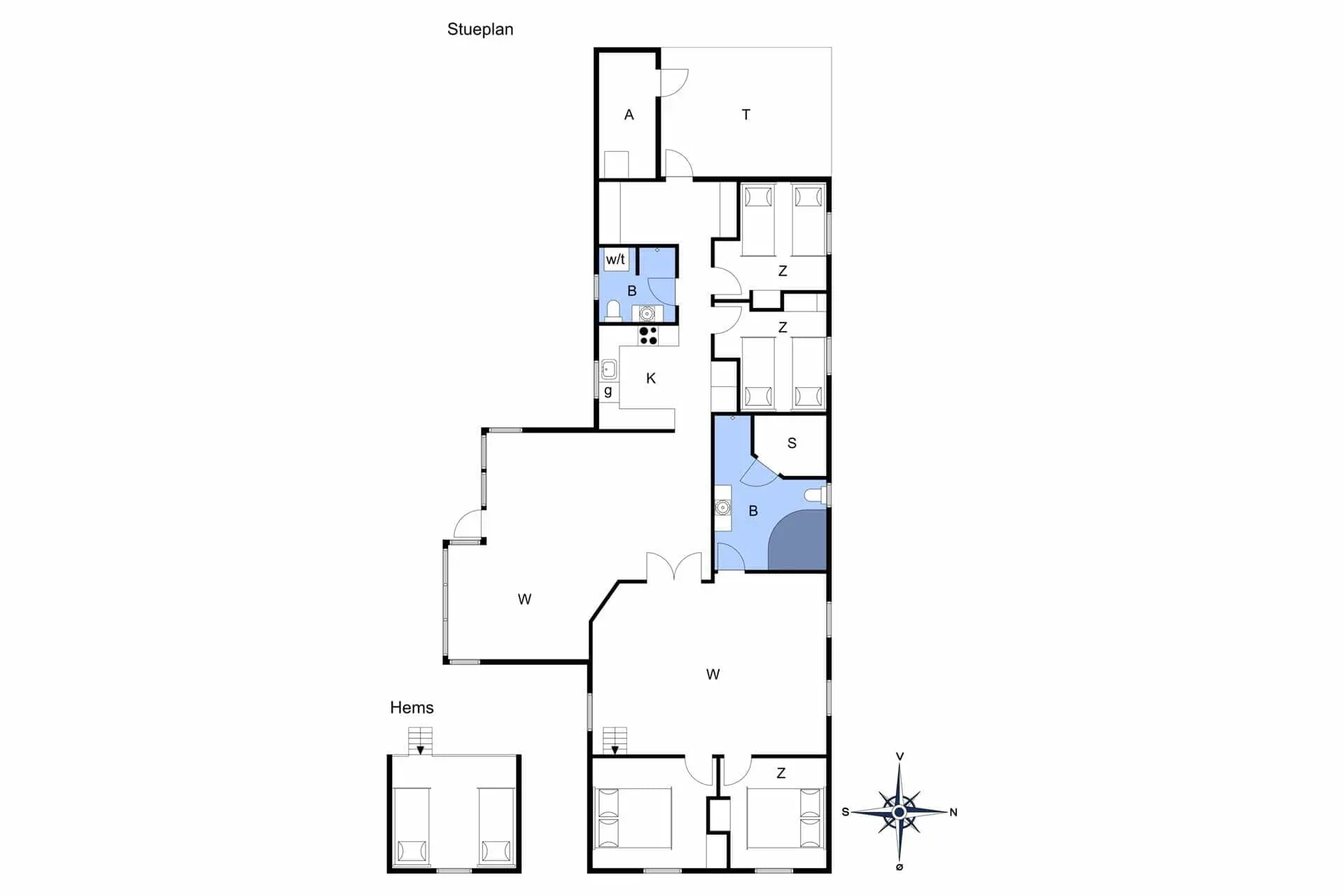 Schon von außen kannst du erkennen, dass es sich um ein erstklassiges Ferienhaus handelt. Der gleiche Eindruck gilt natürlich auch im Innenbereich. Jedes einzelne Zimmer ist stilvoll mit gemütlichen, funktionalen und modernen Möbeln eingerichtet. Als weniger sichtbares Detail sorgt die Fußbodenheizung für ein angenehmes Raumklima und geringere Heizkosten. Die Deckenhöhe und die großen Fensterfronten verleihen dem Haus eine helle und freundliche Atmosphäre – nicht zuletzt im Wohnbereich, der ein schönes Wohnzimmer mit einer integrierten Küche verbindet. Im Anschluss an das Wohnzimmer befindet sich ein Aktivitätsraum mit Billardtisch und Tischfußball, in dem du die Urlaubsmeisterschaft in beiden Disziplinen gewinnen kannst. Wenn du Entspannung benötigst, kannst du in einem der vier Schlafzimmer oder auf dem mit zwei Matratzen ausgestatteten Schlafboden ein Nickerchen machen. Volle Entspannung kannst du auch in einem der beiden Badezimmer genießen, denn hier gibt es sowohl einen Whirlpool als auch eine Sauna.