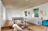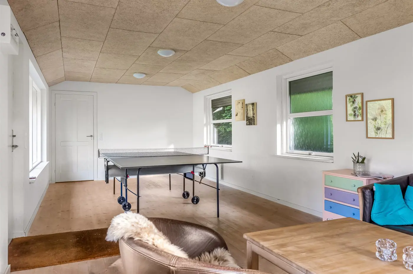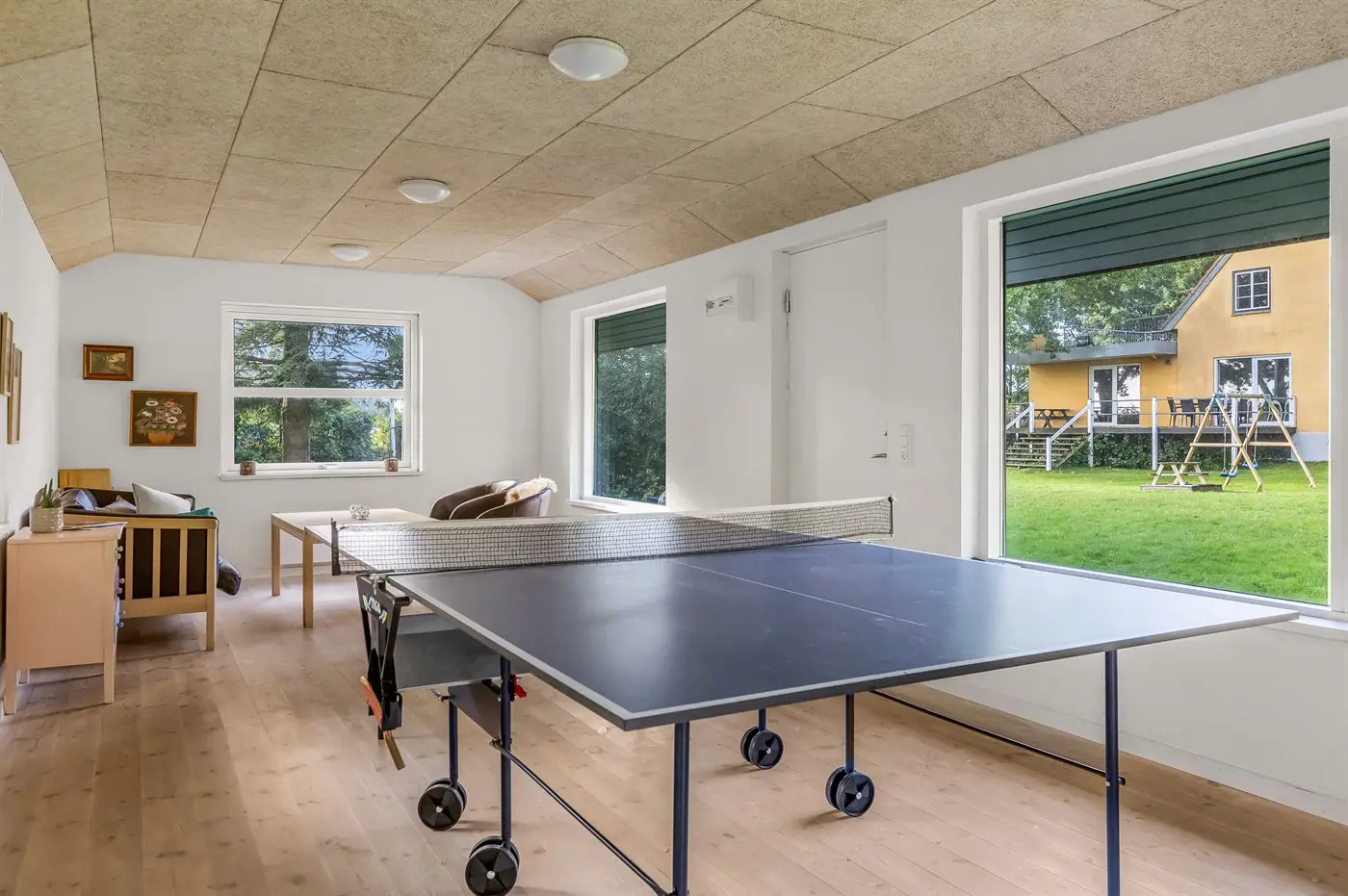 Am Ende des Gartens liegt ein großes Gästehaus, das mit Aktivitätsraum mit Tischtennis und Bobspiel eingerichtet ist. Hier befindet sich außerdem ein zusätzliches Schlafzimmer mit Platz für zwei Personen.